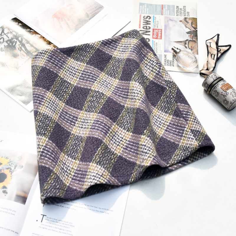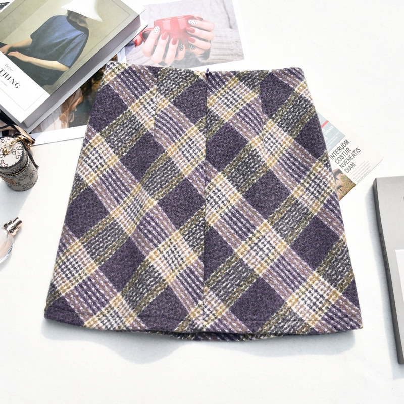 毛呢包臀裙复古女格子显瘦紫色小个子A字裙短裙半裙半身裙裙子