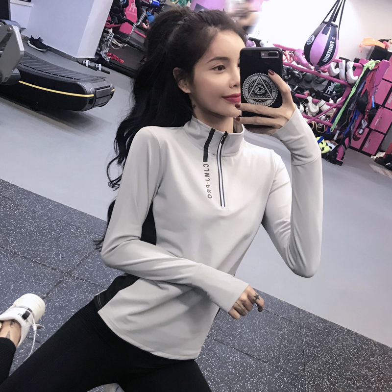 岚纹修身半拉链健身服上衣女户外运动卫衣长袖跑步骑行瑜伽服秋冬