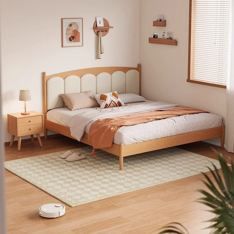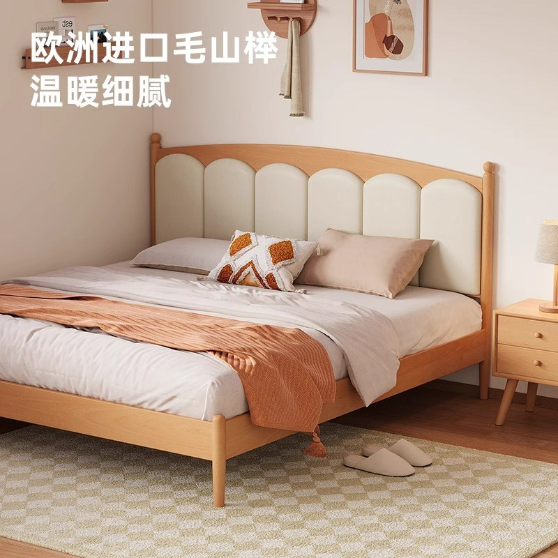 榉木实木床现代简约1.5米主卧双人床高端大气1.2米小户型单人床架