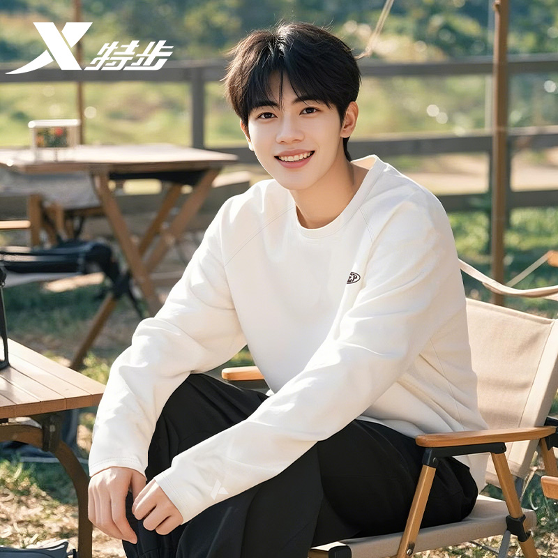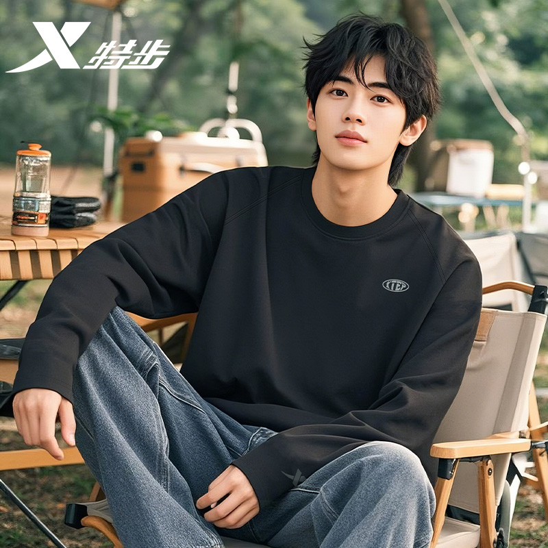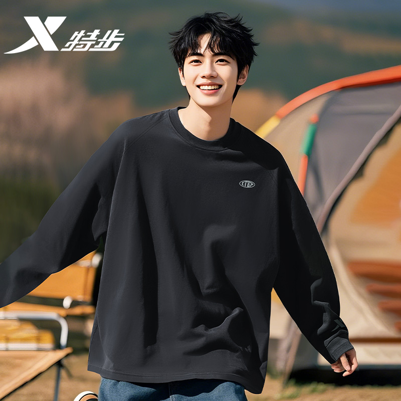 特步薄款卫衣男2025秋季新款男士简约韩版吸湿速干长袖T恤运动服