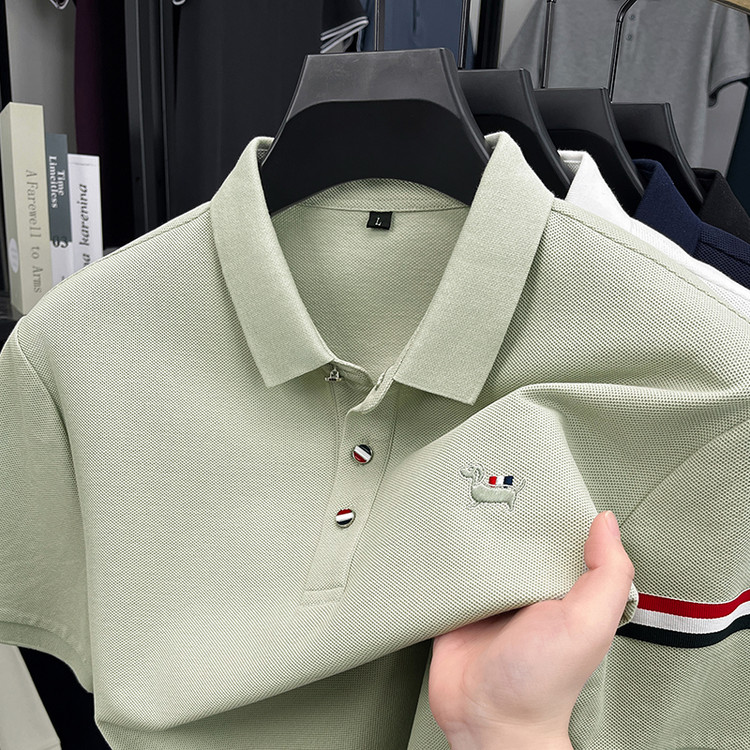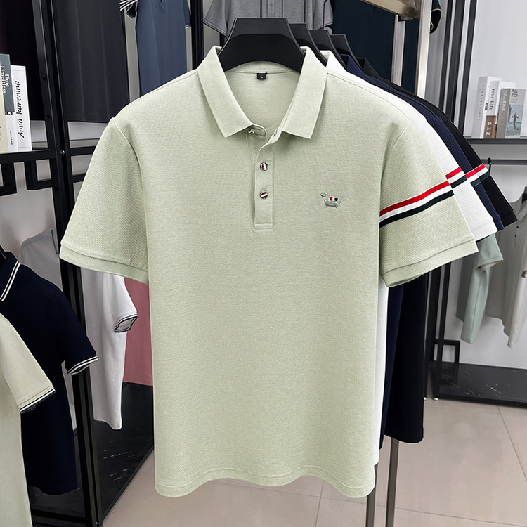 100%纯棉男士POLO衫丝光光长绒棉珠地夏装T恤特色绣花纯色打底衫
