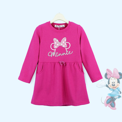 迪士尼童装女孩圆领长袖连衣裙子春秋款中大童韩版抓绒保暖淑女裙