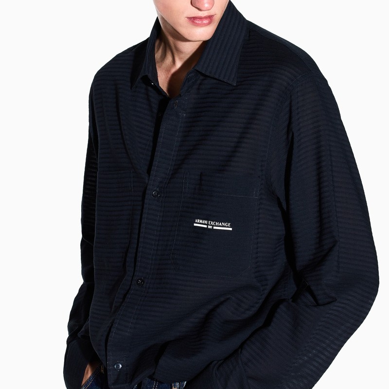 AX/阿玛尼男士棉质翻领长袖衬衫