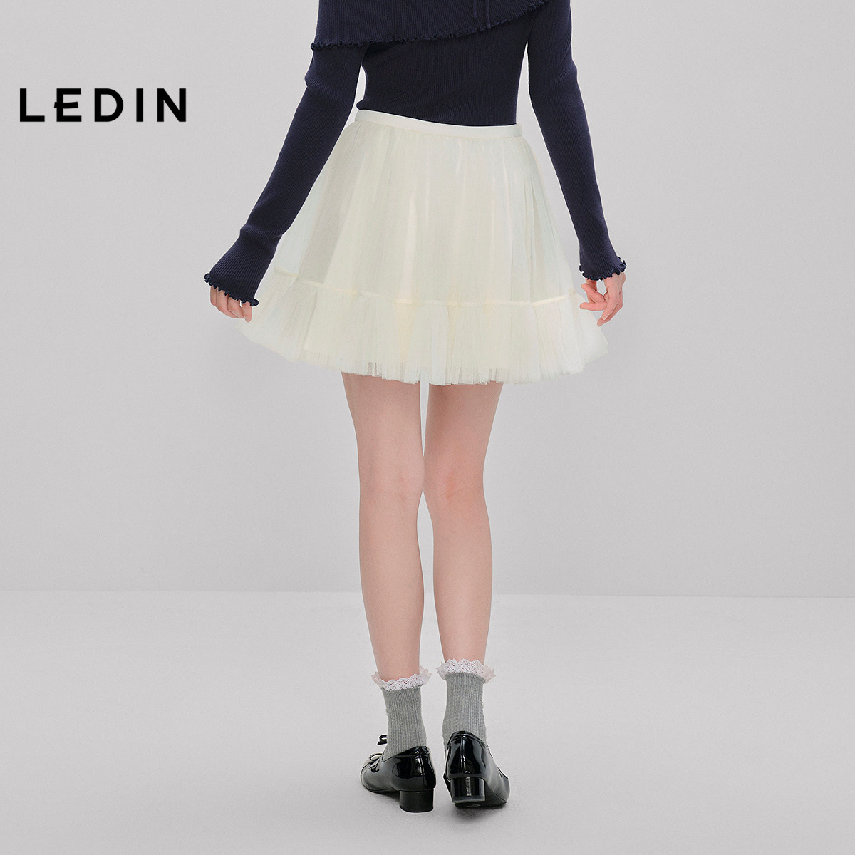 【商场同款】乐町仙女小白裙女秋季新款蛋糕群A字半身裙C1GEF3407