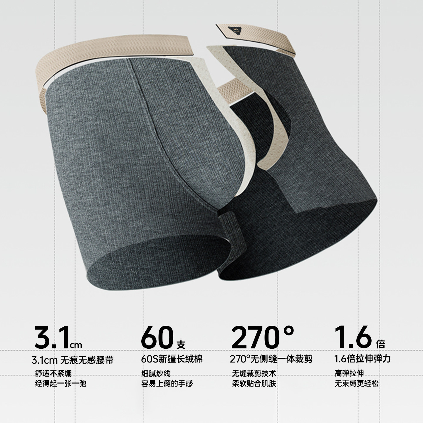 A类纯棉高弹男内裤10A抗菌蚕丝裆