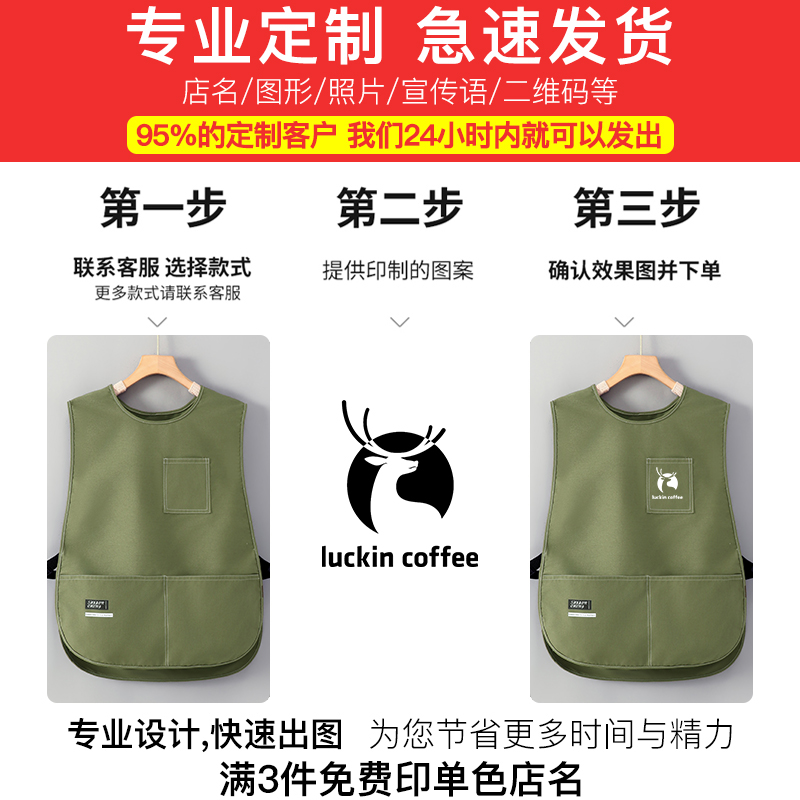 男做饭2025新款马甲式围裙冬季韩版纯棉工作服女坎肩定制logo印字
