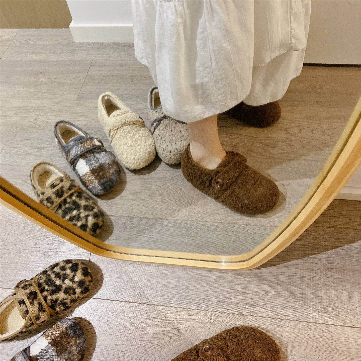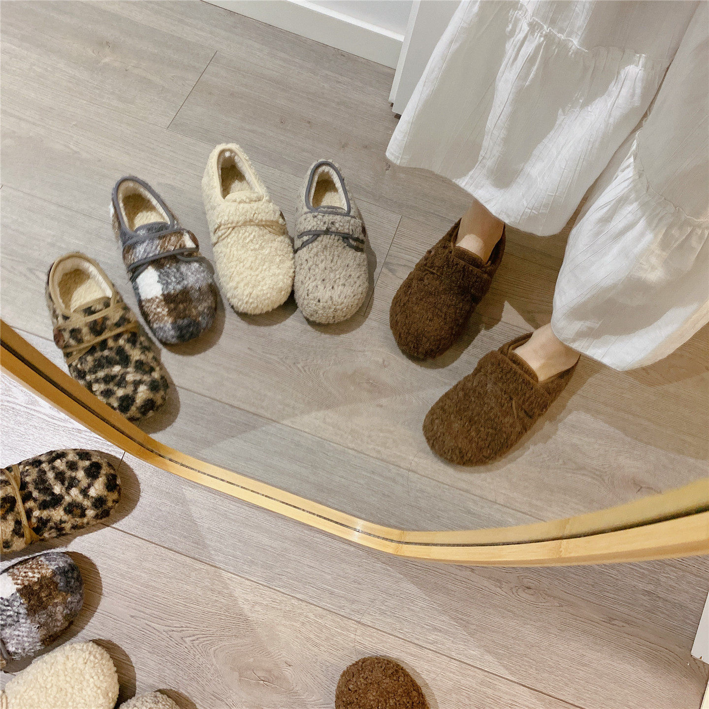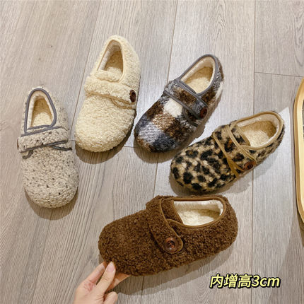 毛毛鞋魔术贴加绒保暖单鞋女2025冬季新款韩版内增高棉鞋豆豆鞋女