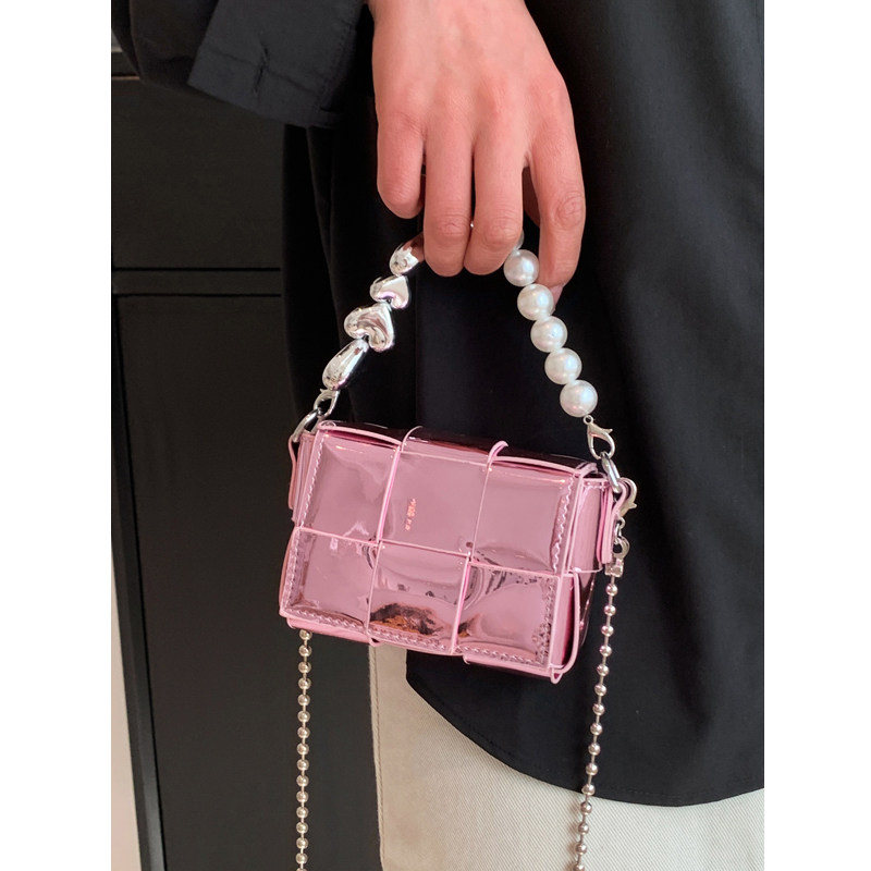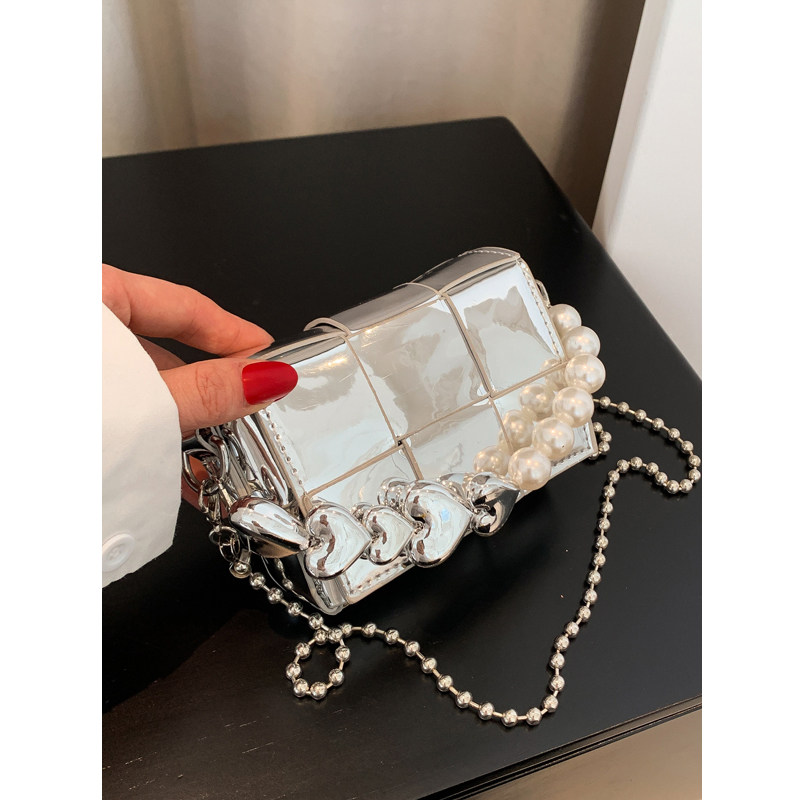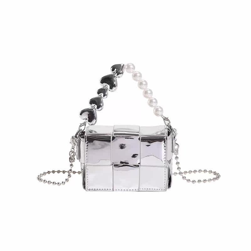 小众设计迷你小方包辣妹银色珍珠链条手拎包夏季高级感单肩斜挎包