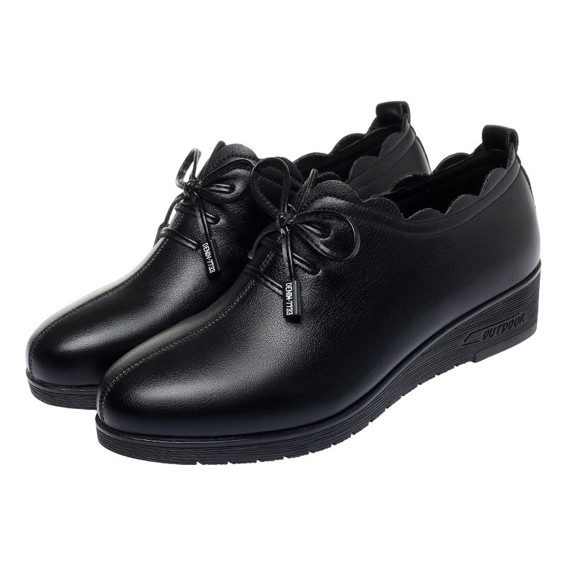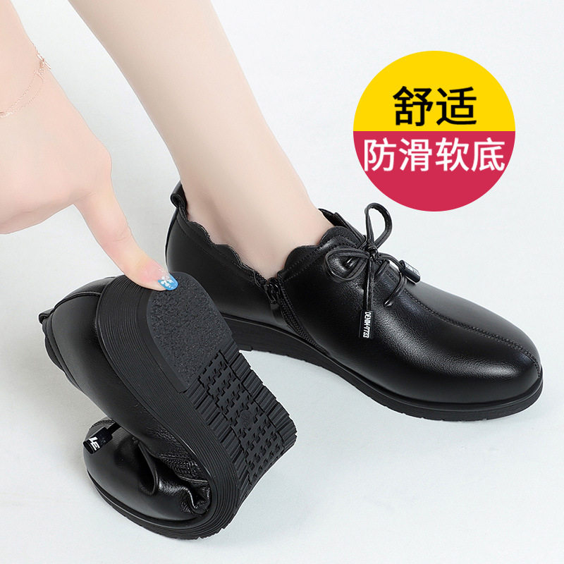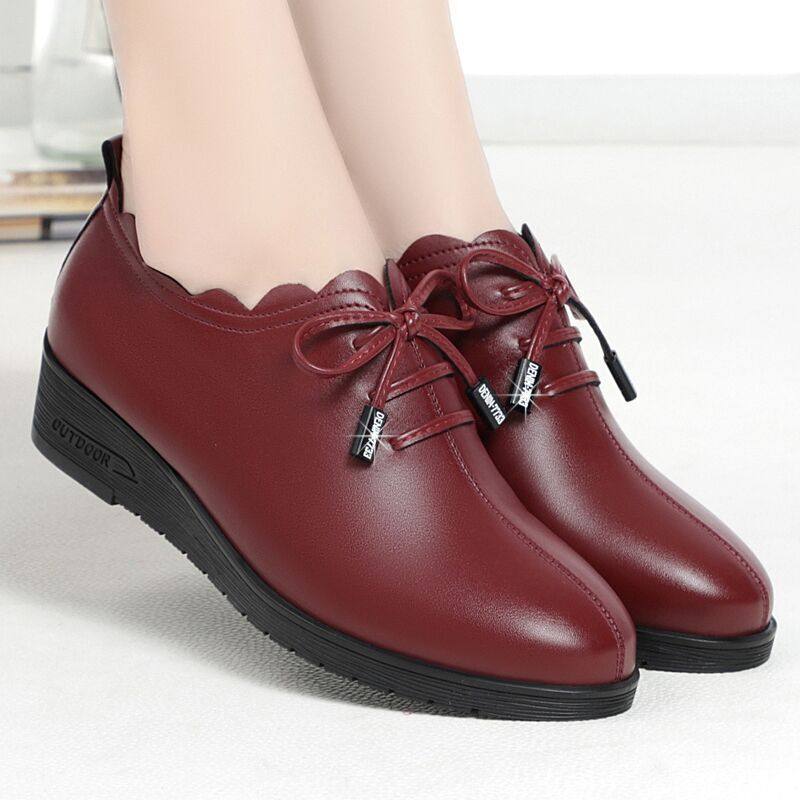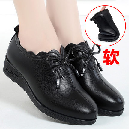 妈妈鞋子单鞋坡跟软皮41大码女鞋脚宽42中老年中年春秋款女士皮鞋
