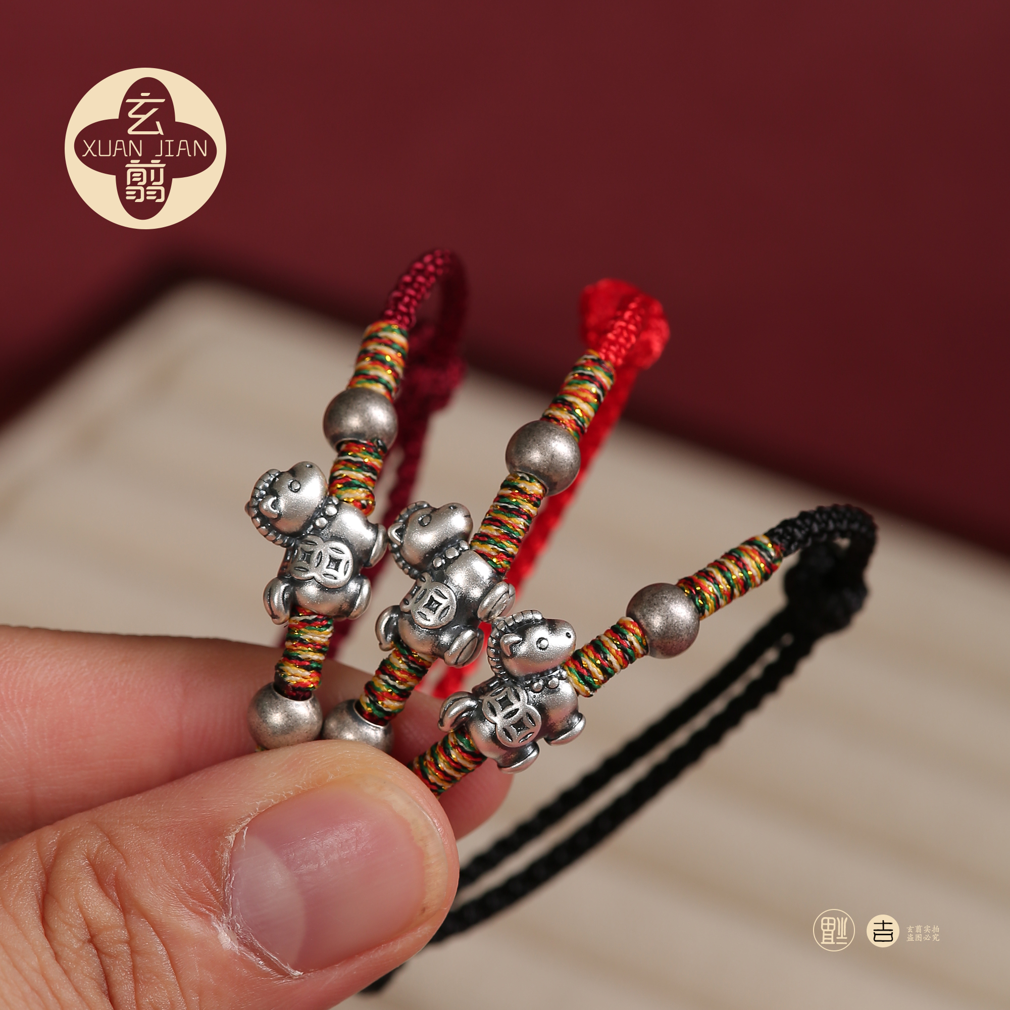 2026年新款足银999属马本命年红绳女纯银转运珠手工编织手链礼物