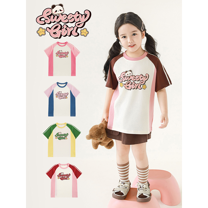 幼悠 女童中长款字母印花短袖夏季元气可爱高弹透气撞色拼接T恤潮