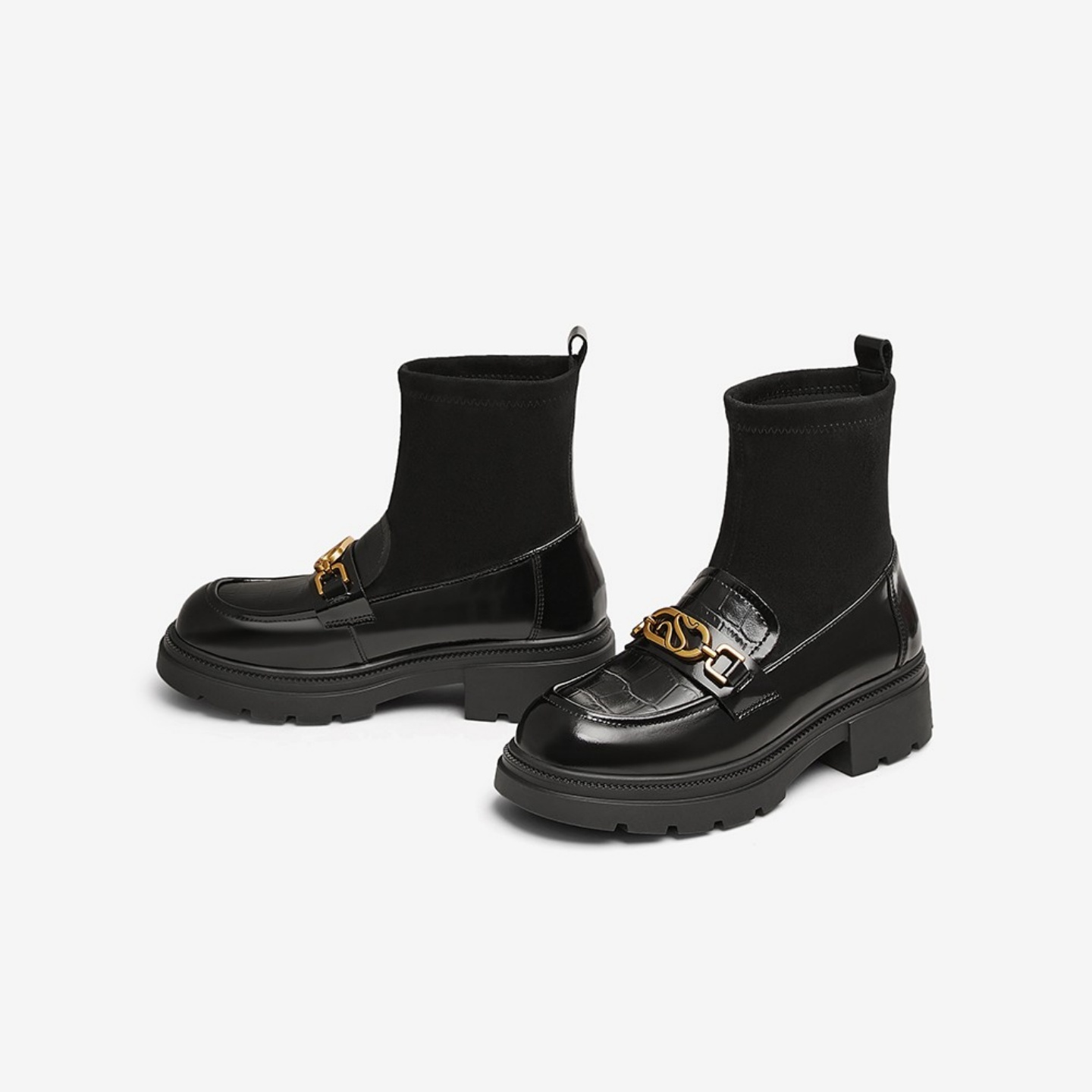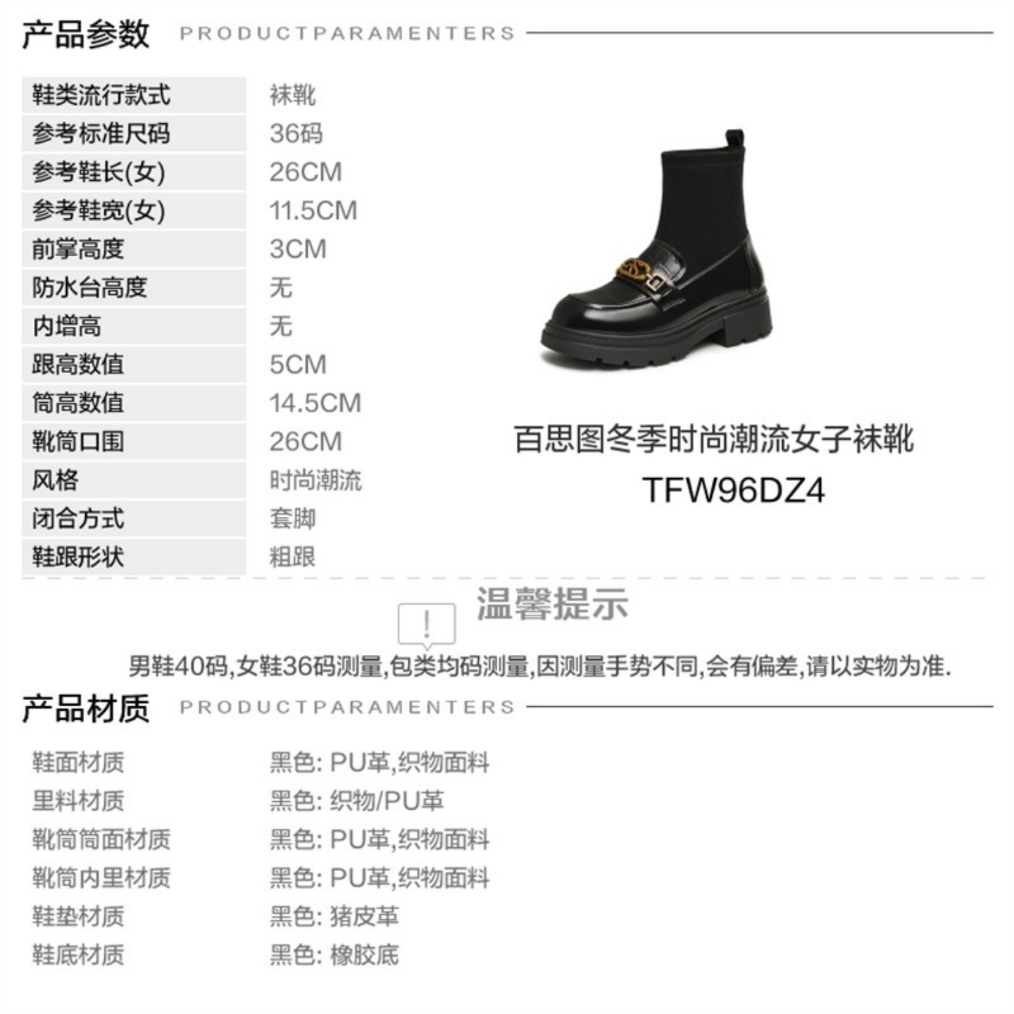 百思图2024冬季新款商场同款女鞋时尚潮流袜靴粗跟短筒靴TFW96DZ4