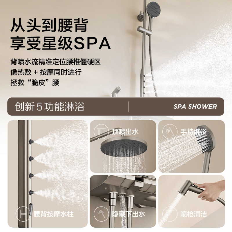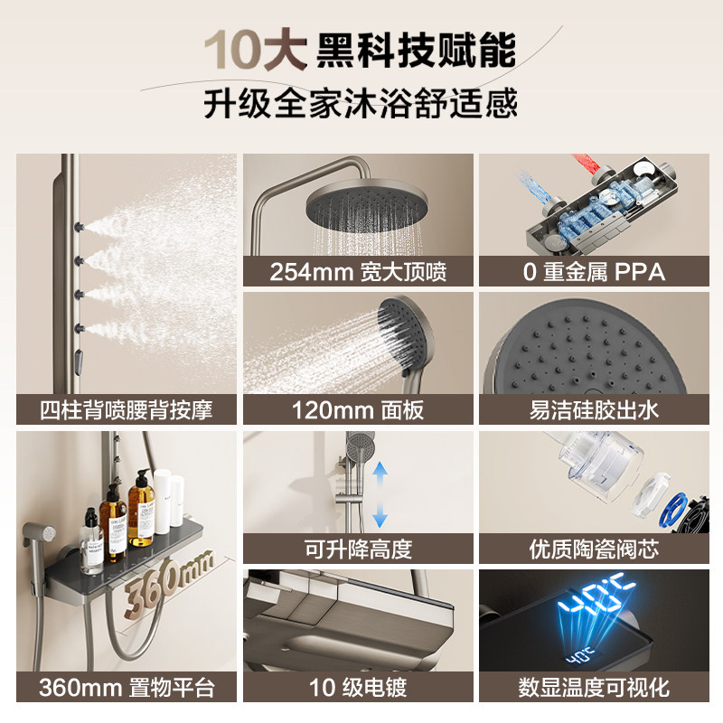 法恩莎卫生间增压沐浴花洒喷头背喷按摩钢琴键数显淋浴花洒套装