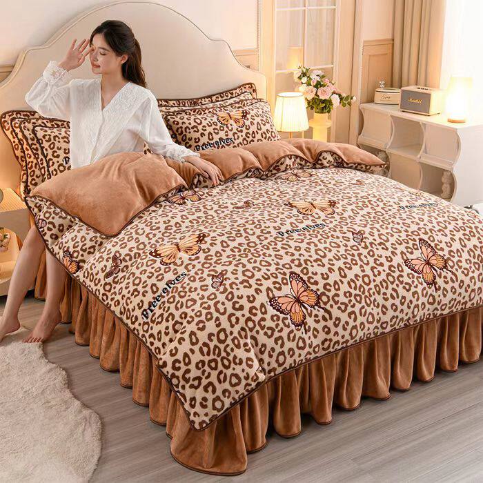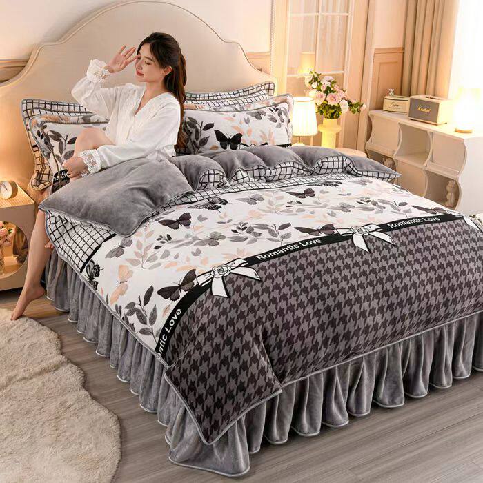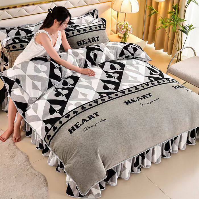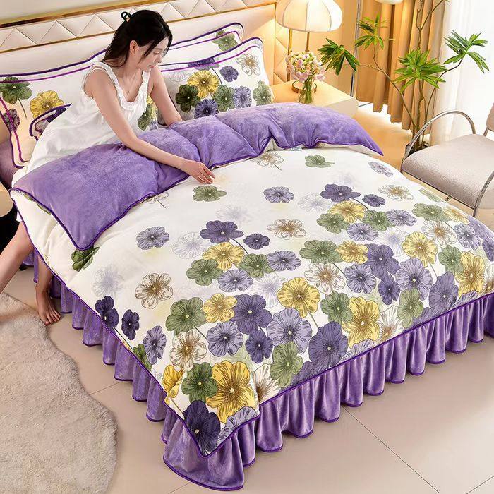 冬季双面珊瑚绒四件套床裙加厚法兰绒床单被套金貂牛奶绒床上用品