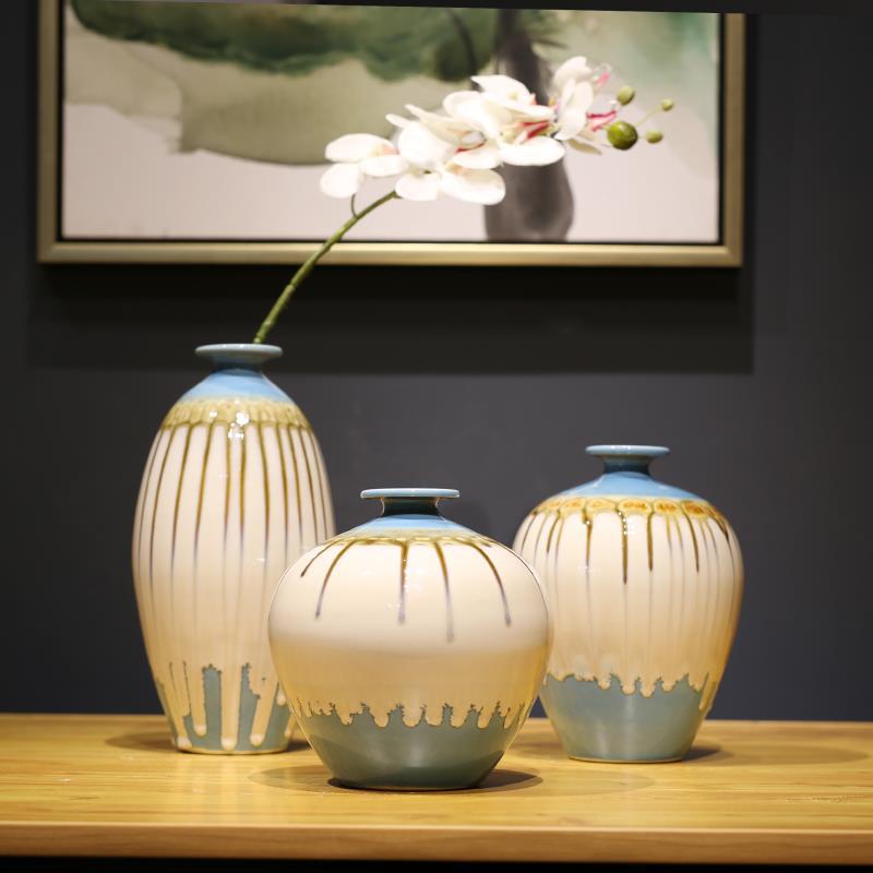 美式陶瓷花瓶客厅摆件插花 高温颜色釉家用电视柜软装装饰工艺品