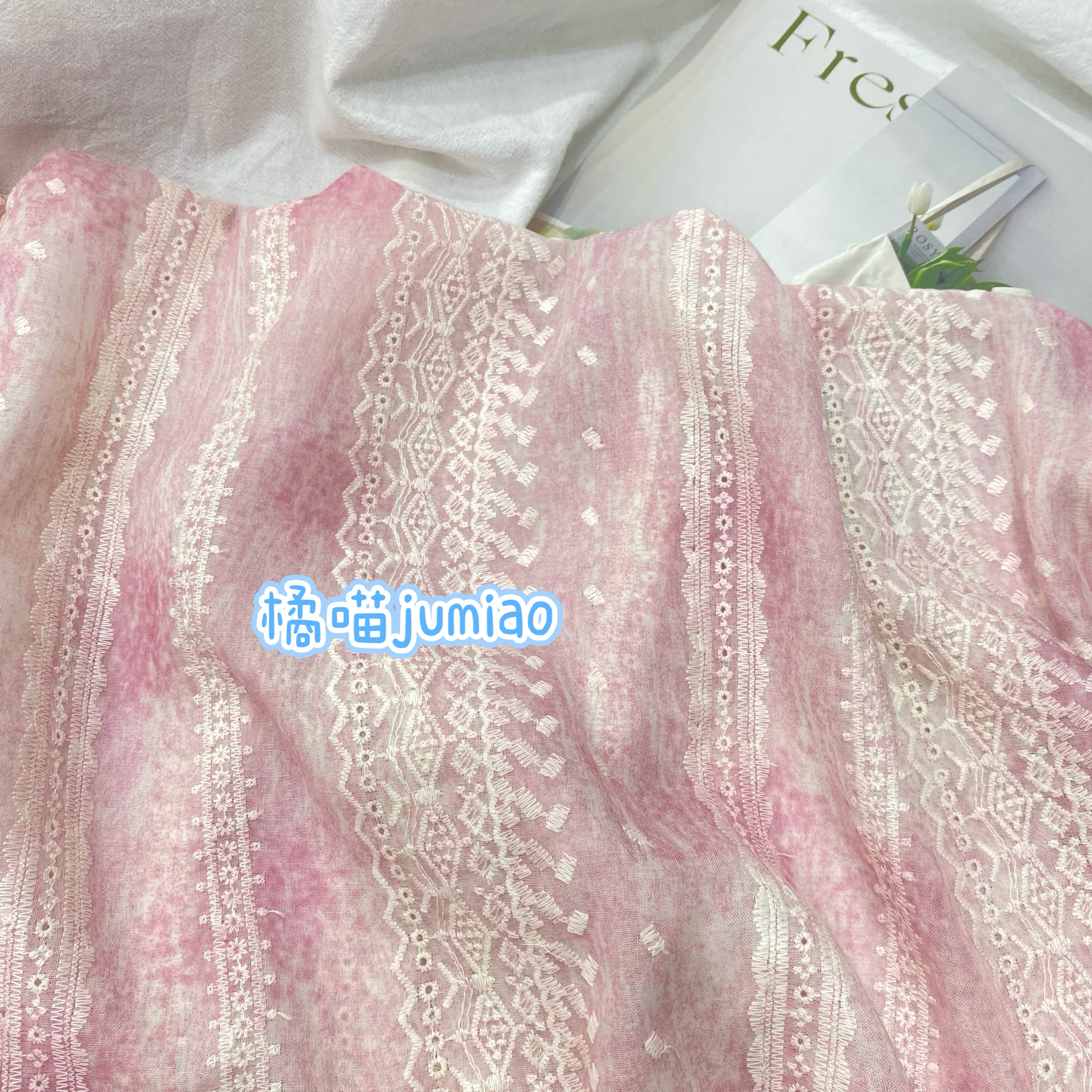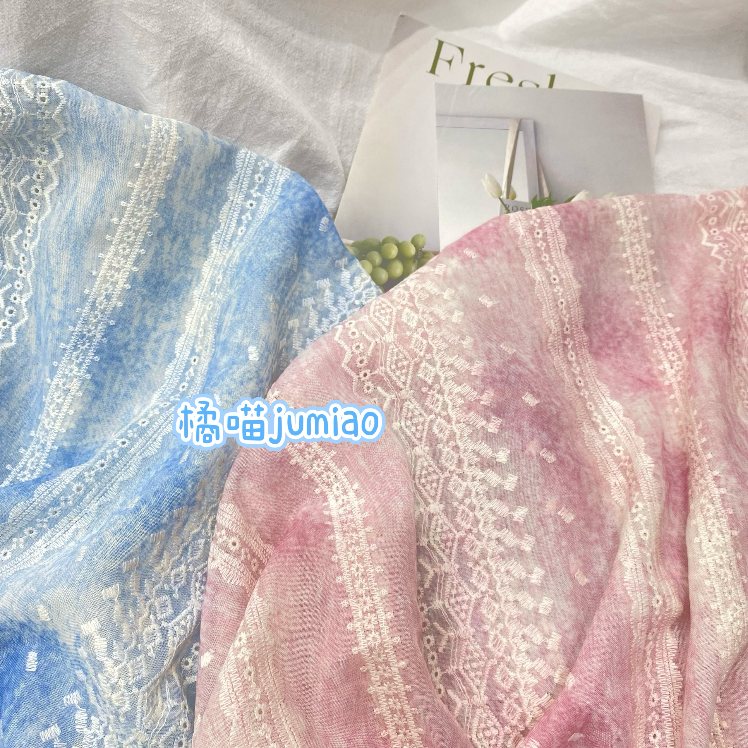 橘喵jumiao全涤水墨绣花唯美新中式薄款布料连衣裙diy面料发圈新