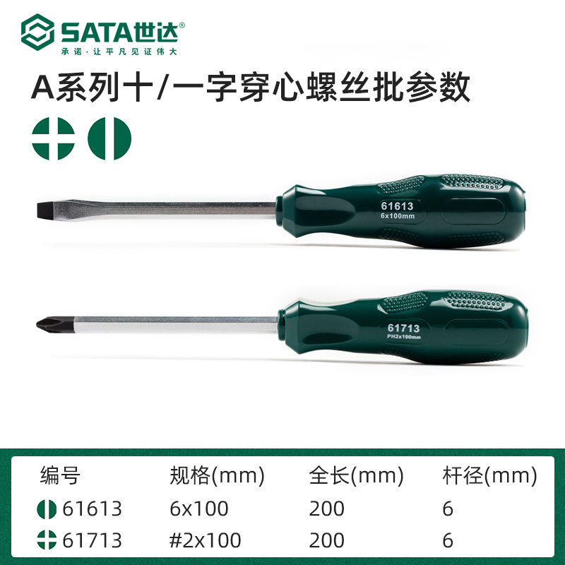 世达螺丝刀工具A系列一字十字敲击穿心螺丝批改锥起子61613/61713