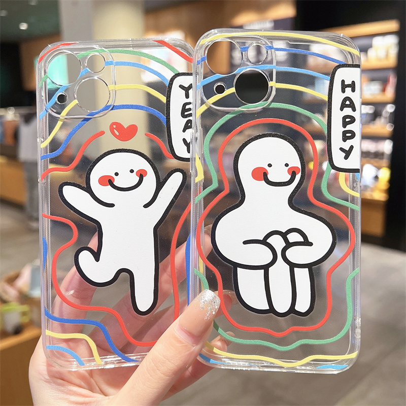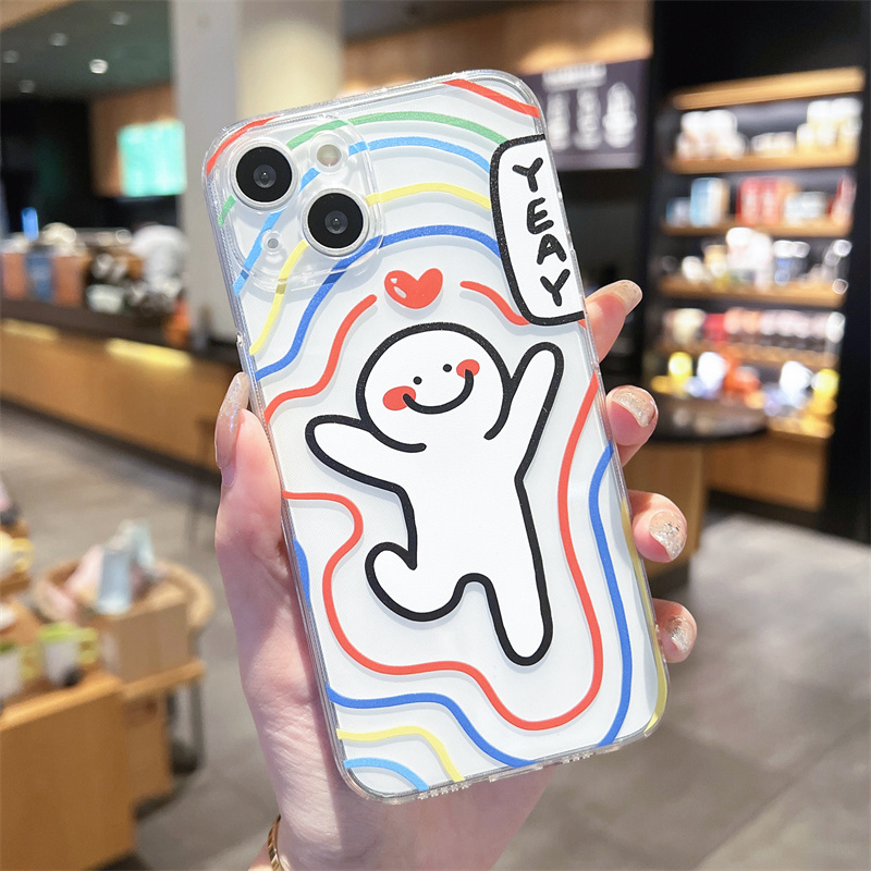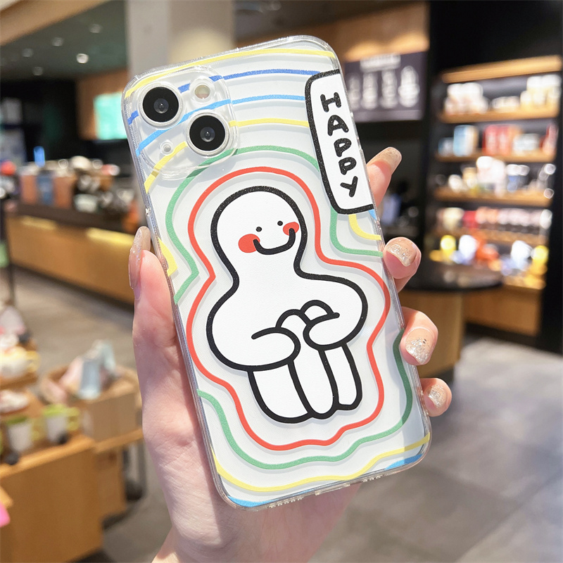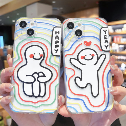 ins新款彩色线条开心趣味情侣适用iPhone14手机壳苹果13promax软壳12mini防摔15硅胶16男女8plus全包7保护套6
