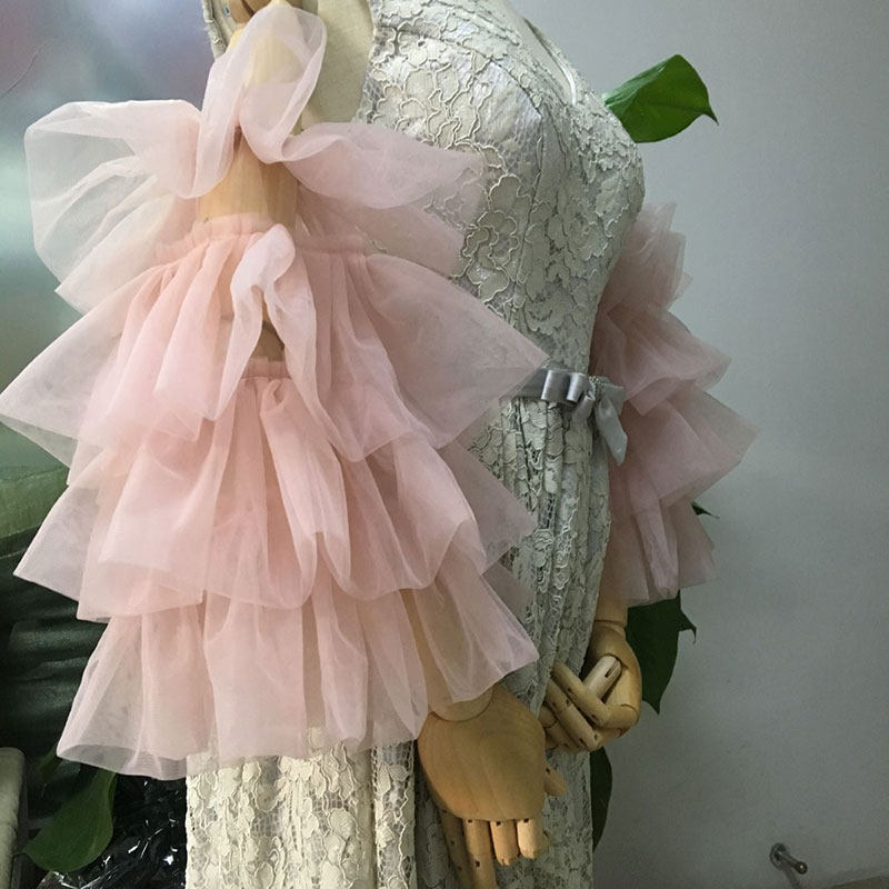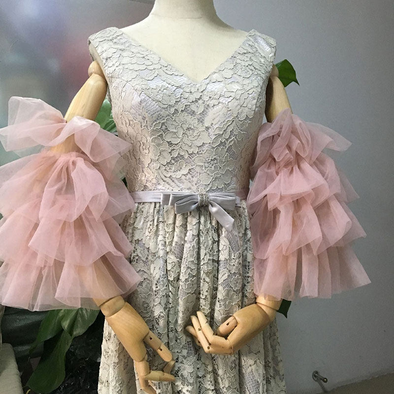 豆沙粉色大泡泡袖婚纱礼服手套影楼造型写真拍照款配饰手纱手袖