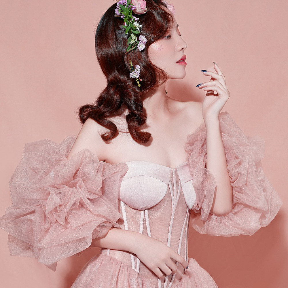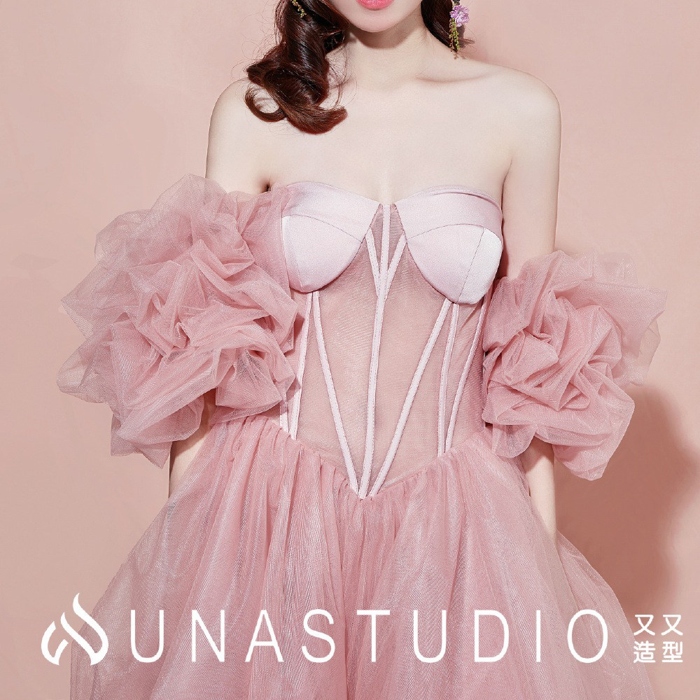 粉色泡泡袖婚纱礼服影楼写真手套