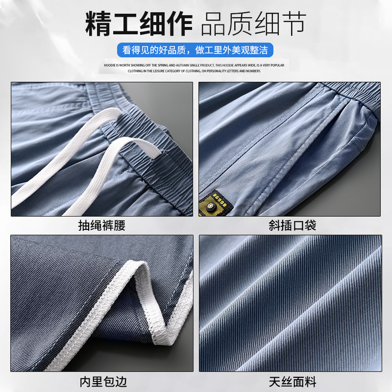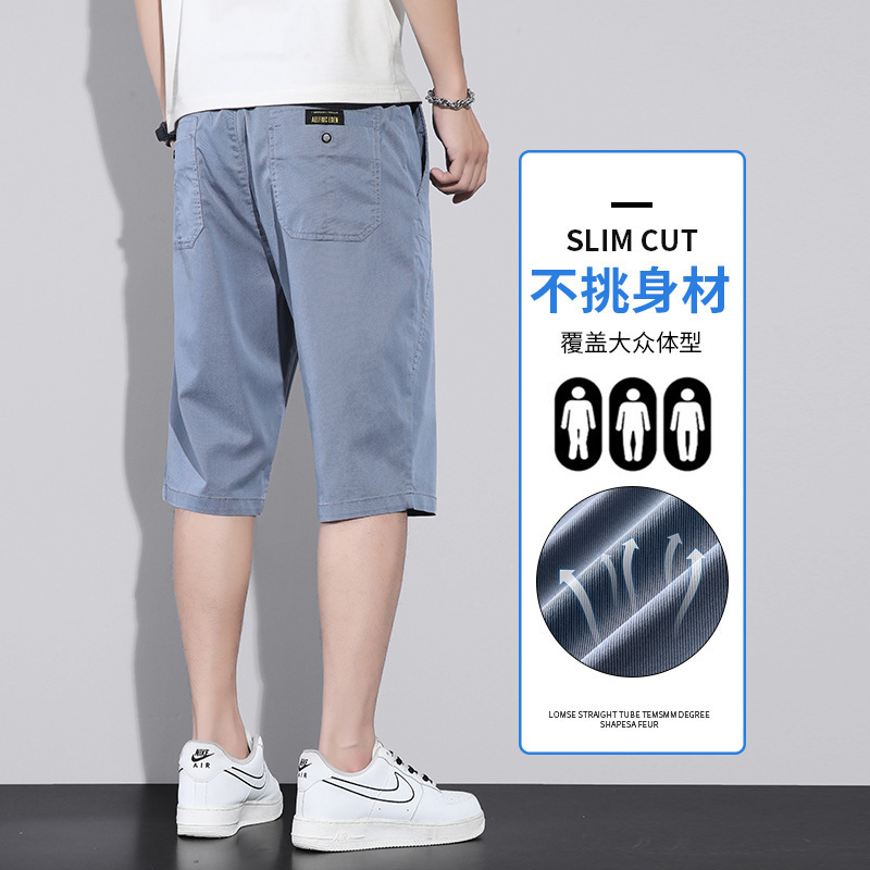 莱赛尔天丝七分裤男士夏季薄款宽松透气休闲运动百搭直筒五分中裤