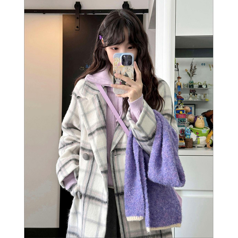 时尚格子中长款毛呢外套女加厚秋冬新款宽松百搭气质夹棉呢子大衣