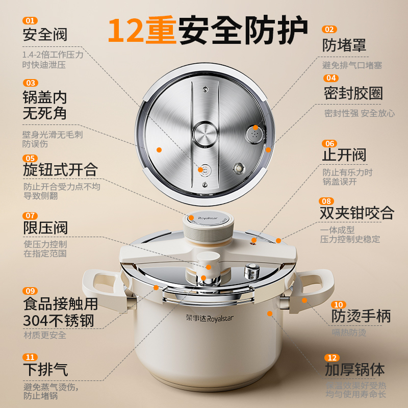 荣事达高压锅家用小型新款防爆不锈钢珐琅压力锅燃气电磁炉通用