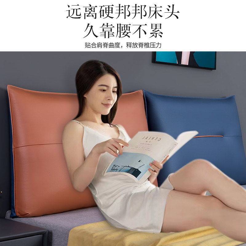 床头靠垫软包套罩大靠背榻榻米自粘垫沙发免洗纯色科技布护腰靠枕