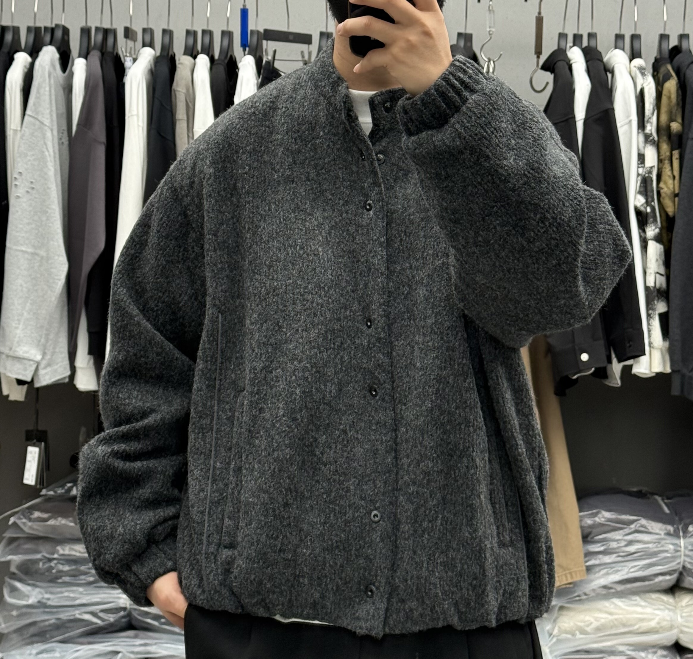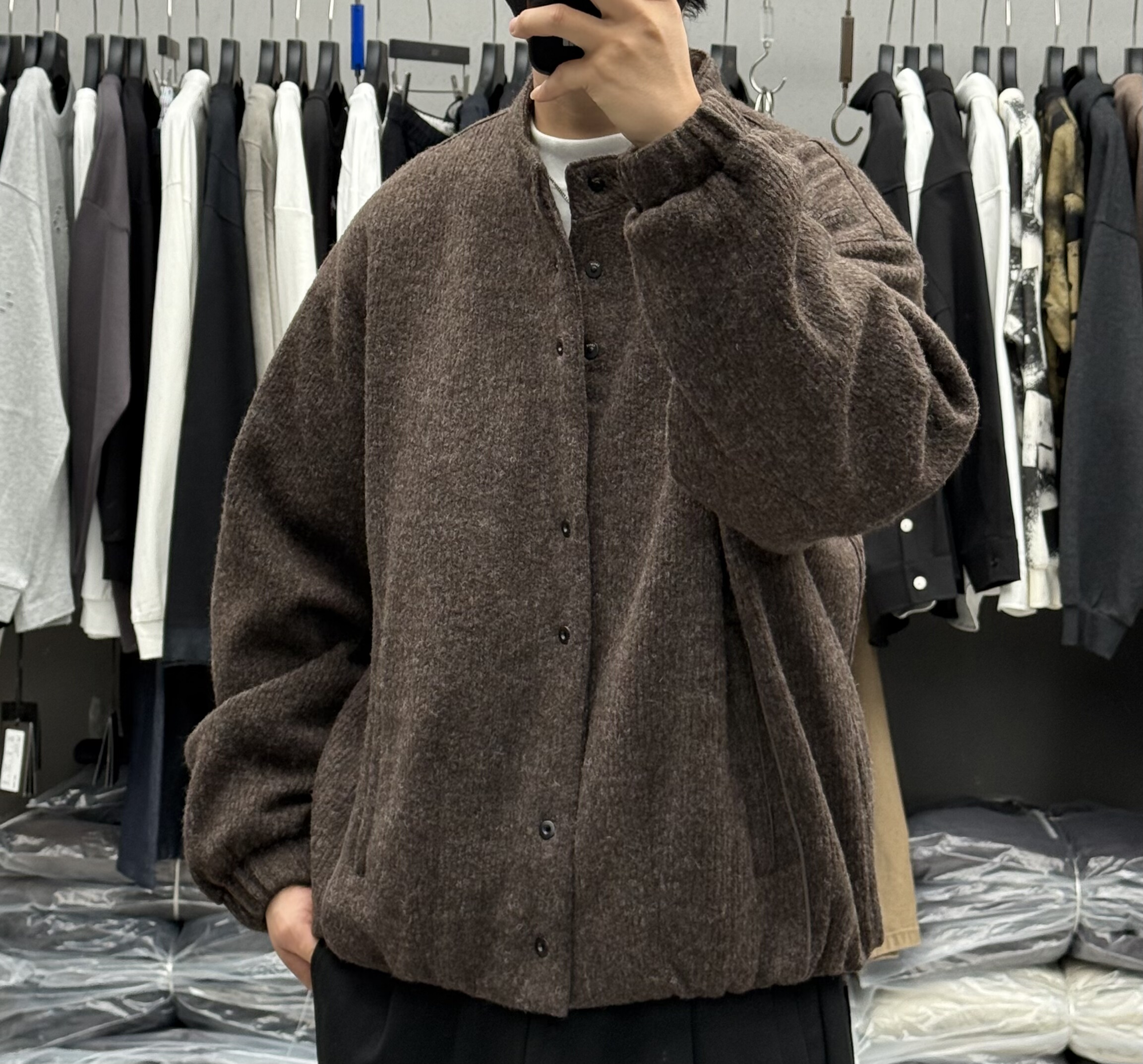 2025冬季新款男高端潮牌立领羊毛呢子羽绒服美式青年宽松保暖外套