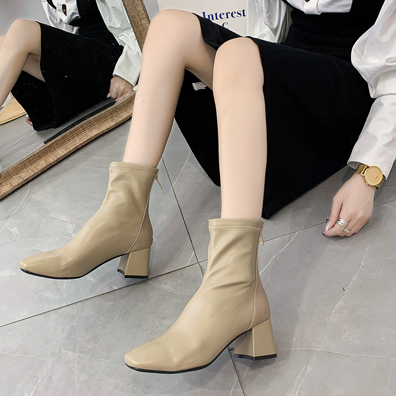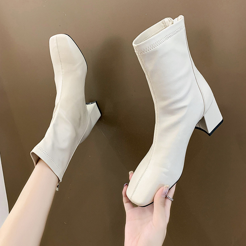 显脚小中筒马丁靴女英伦风裸靴夏季薄款高跟工装短靴春秋瘦瘦单靴
