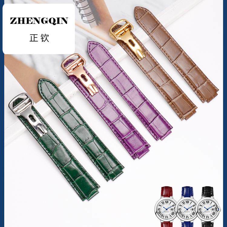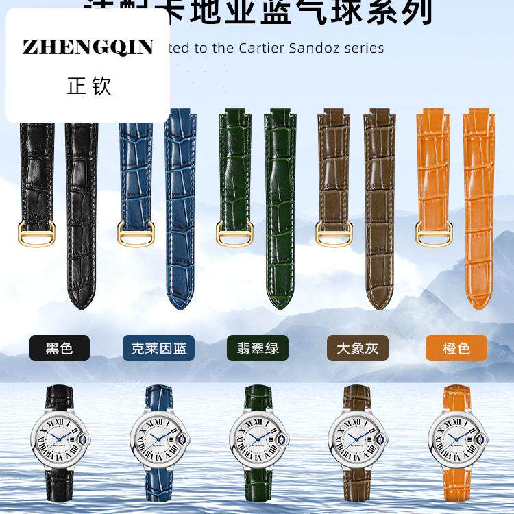 雷帝适配同款卡地亚蓝气球手表带真皮鳄鱼纹牛皮Cartier皮表凸口
