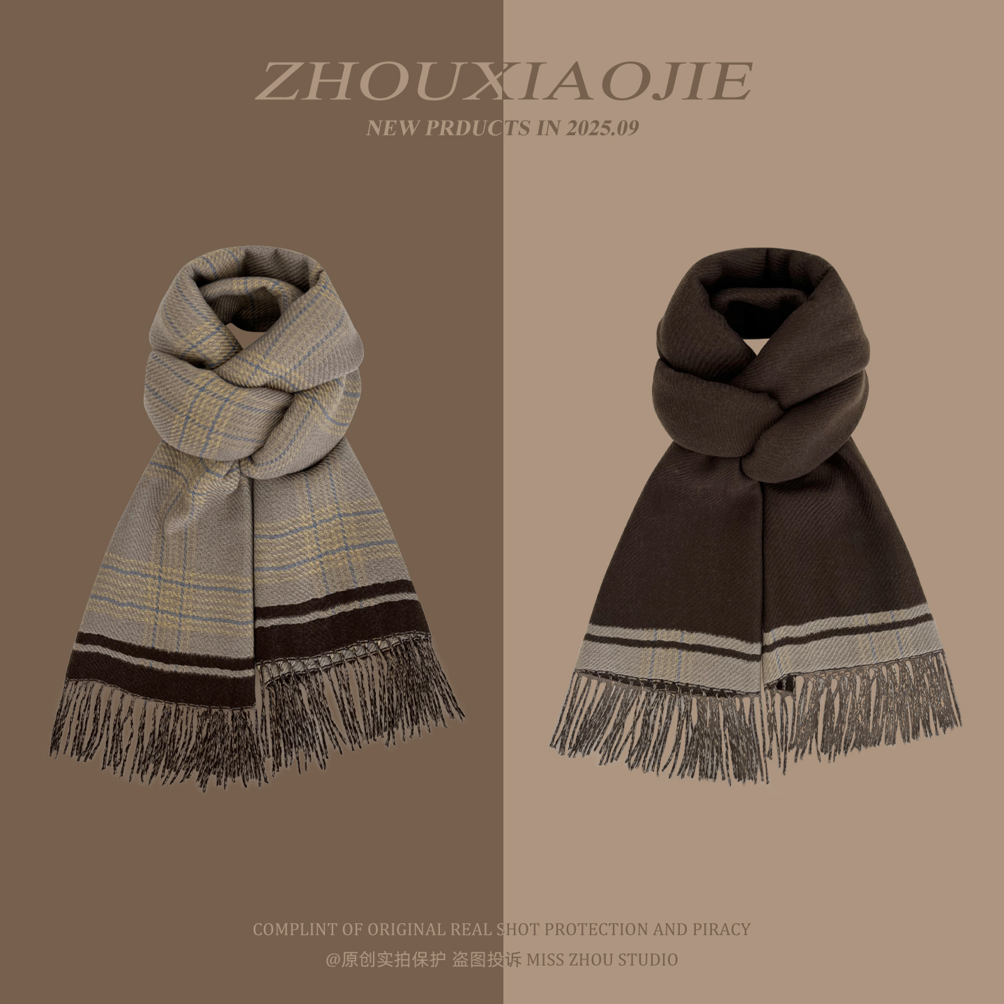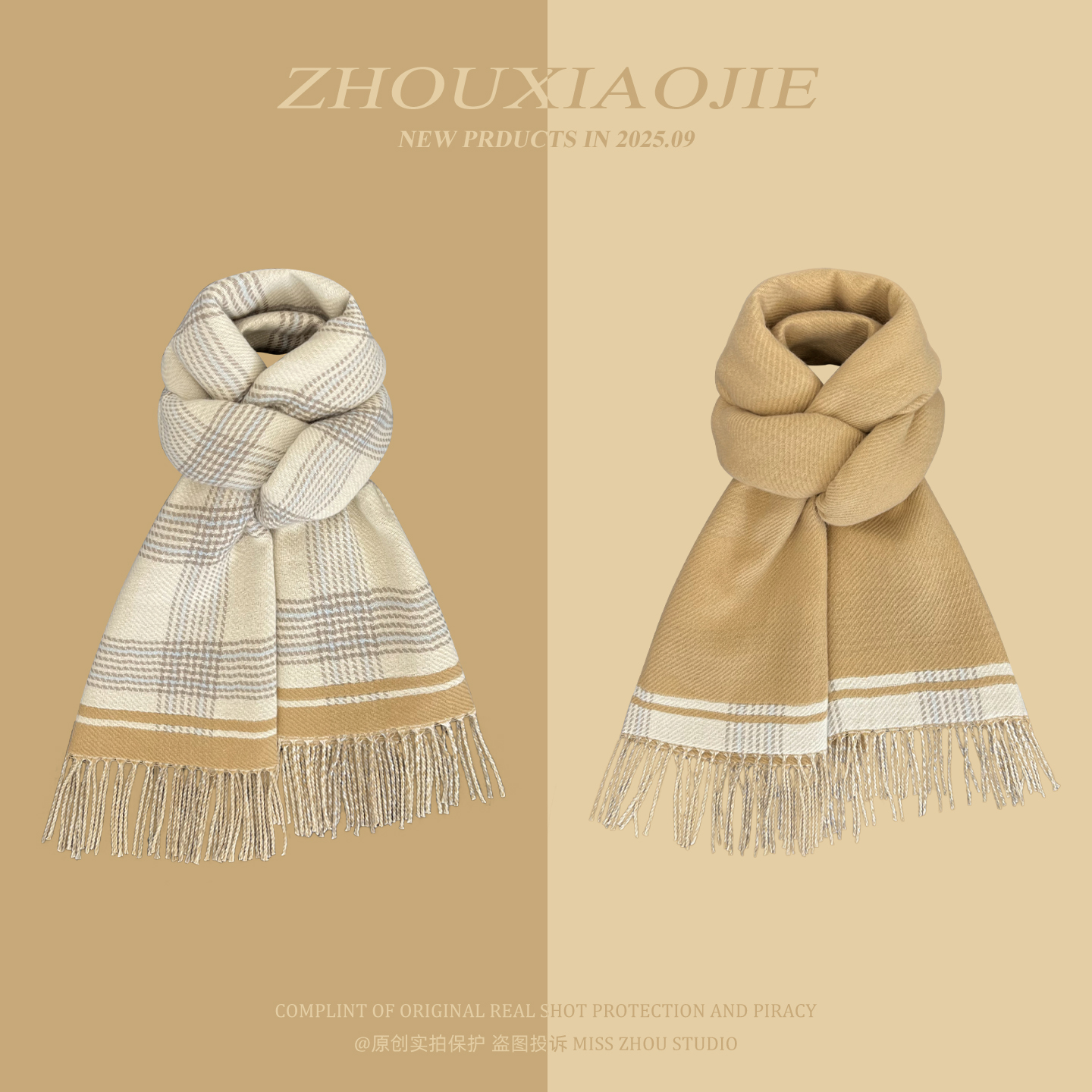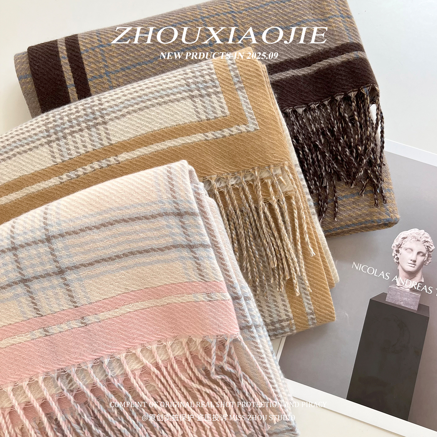 格子双面围巾女2025新款冬季韩系温柔氛围感百搭保暖围脖披肩学生