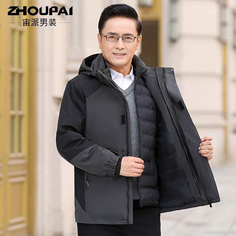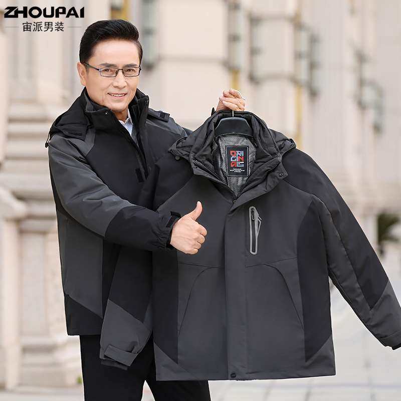 爸爸冬装外套冲锋衣中老年人棉衣男加G绒加厚中年男士父亲羽绒棉