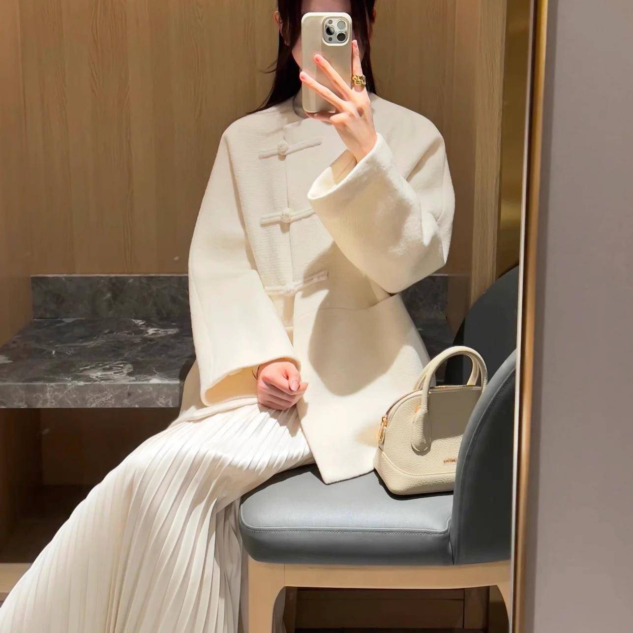 法式毛呢半身裙套装2025秋冬新款中长款气质百褶裙套装