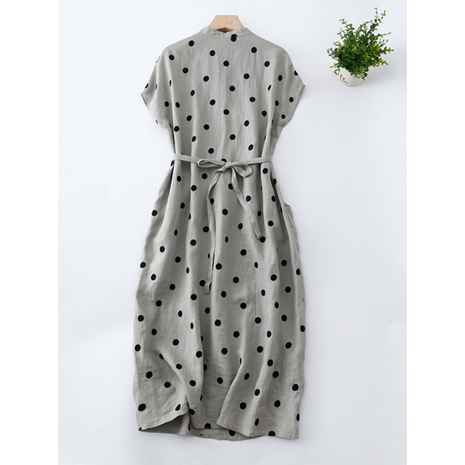 广州十三行文艺波点亚麻连衣裙女士2025年新款妈妈夏装气质高端柱