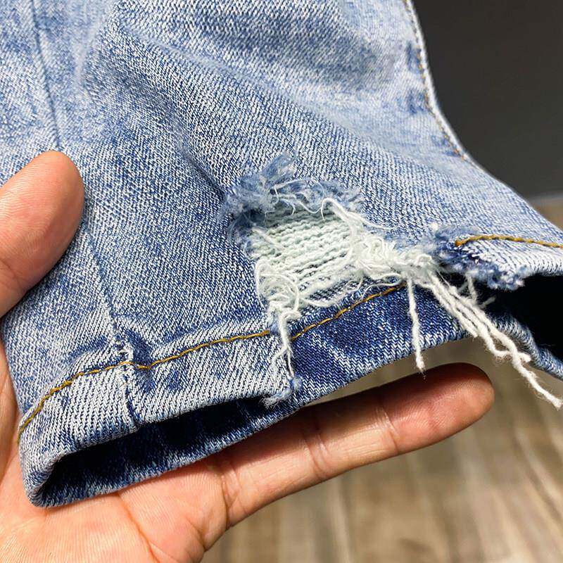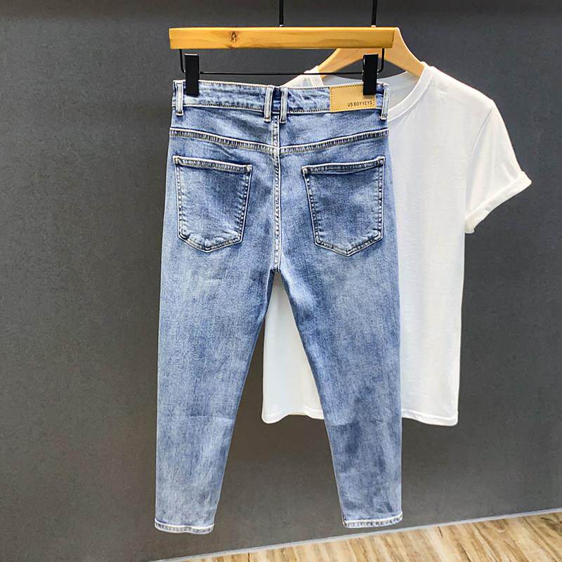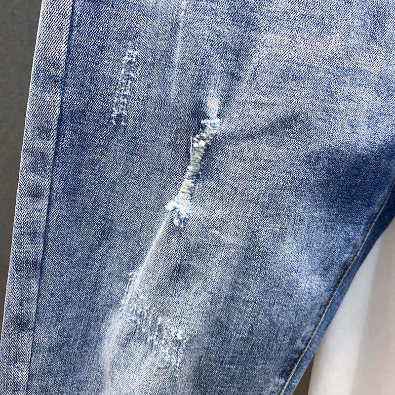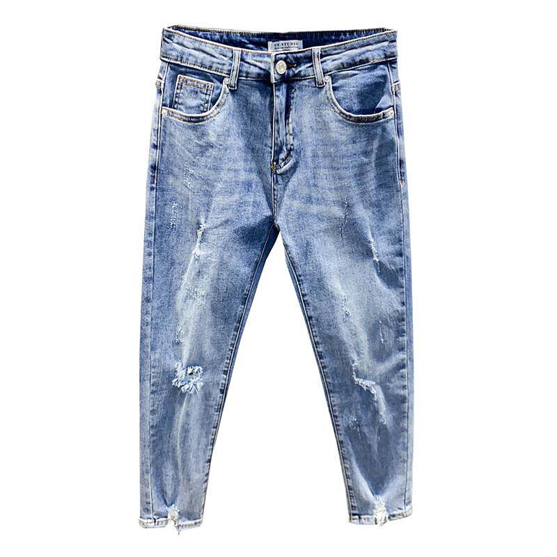 春夏碎脚破洞九分牛仔裤男潮牌帅气微宽修身小脚9分裤子韩版0226d