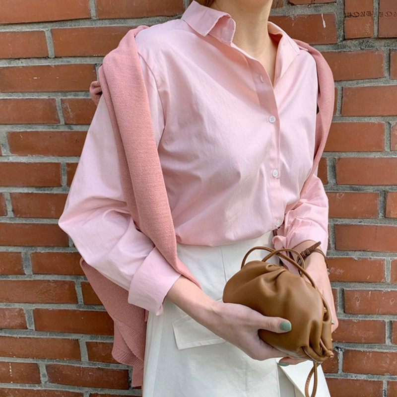 粉色衬衫女设计感小众2025早秋新款基础款长袖衬衫小个子防晒上衣