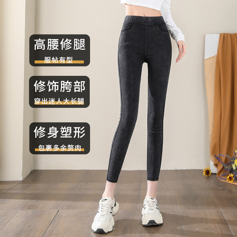 八分小个子仿牛仔打底裤女外穿春秋薄款高腰显瘦九分小脚魔术裤子