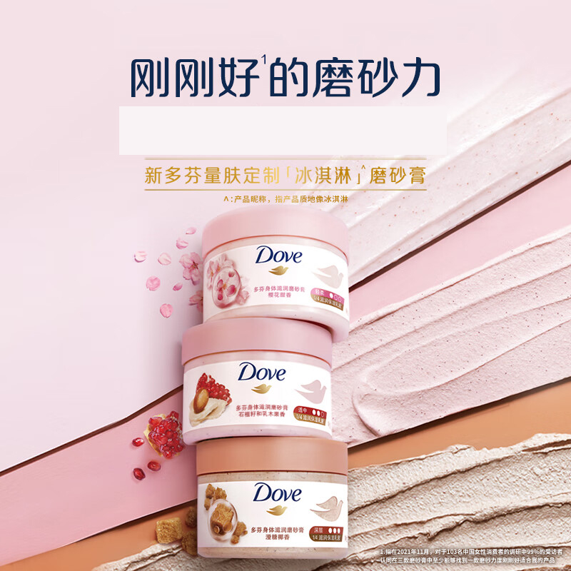多芬冰淇淋身体磨砂膏澄糖椰香沐浴改善粗糙全身疙瘩毛囊男女正品