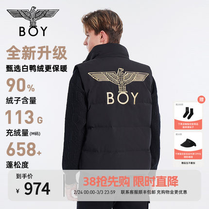 BOYLONDON潮流立领时尚老鹰logo羽绒马甲外套90绒秋冬男女N30014