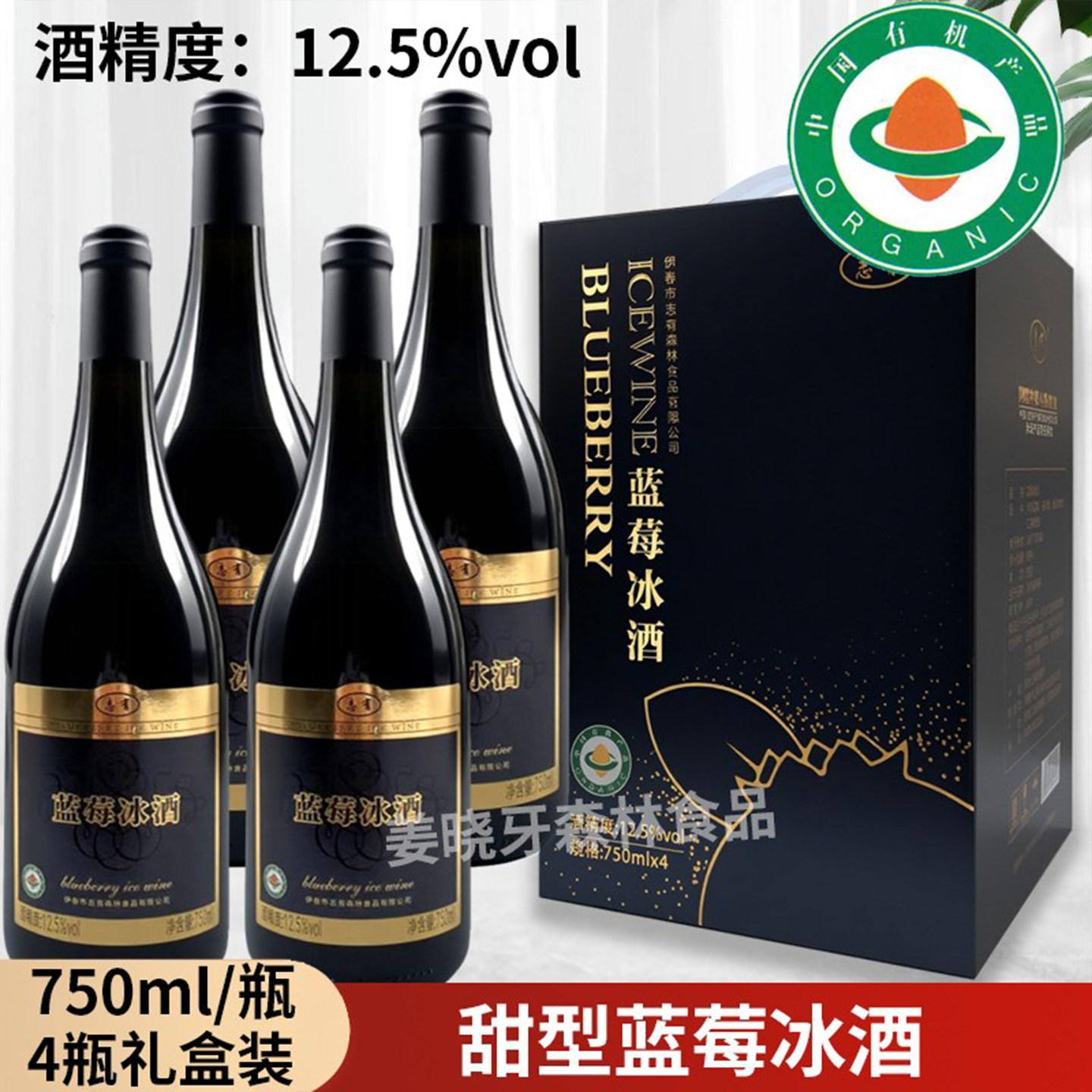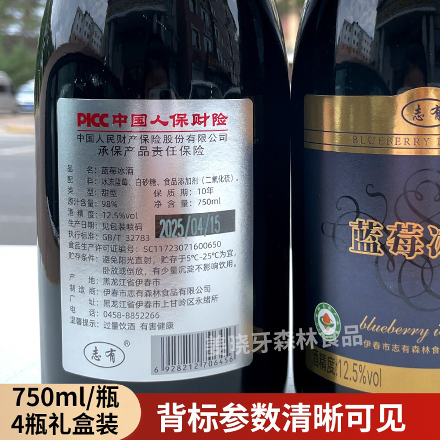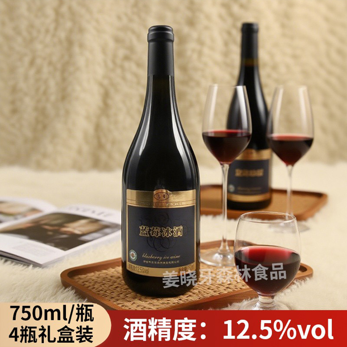 小兴安岭12.5度甜型蓝莓冰酒750m/瓶高档礼盒装果酒饮品日期新鲜