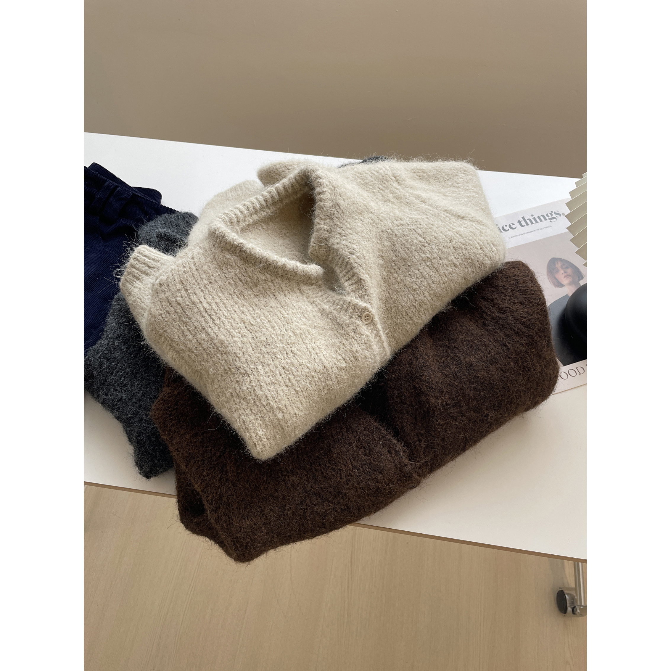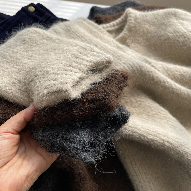 毛绒感~韩系小V领开衫毛衣