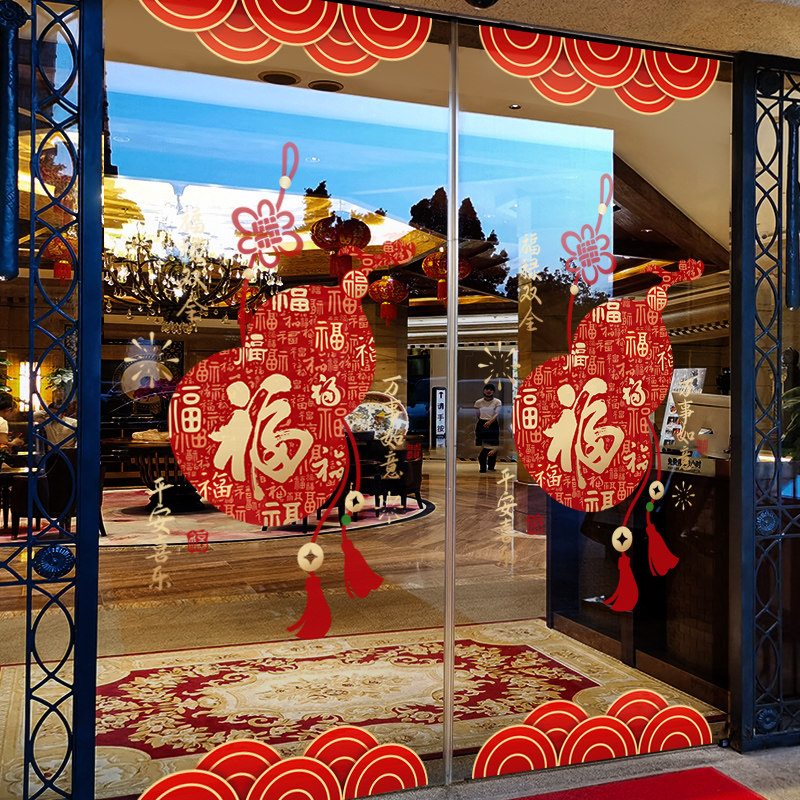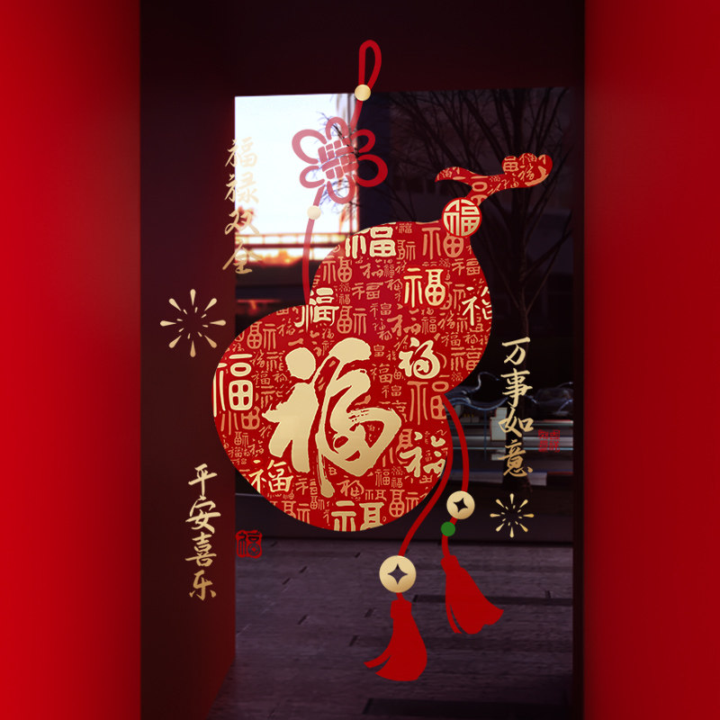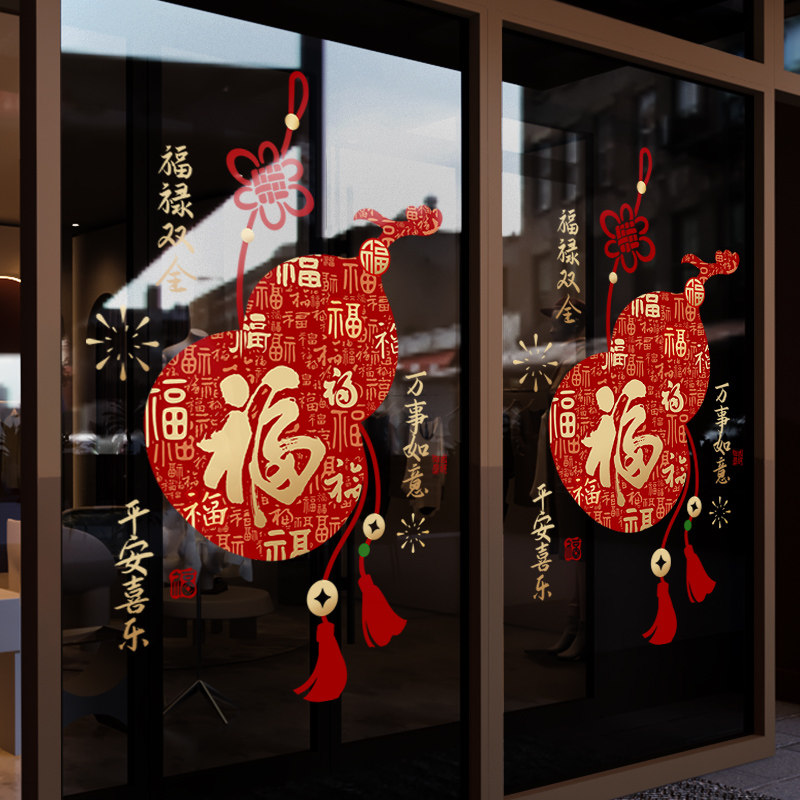 新年装饰窗花马年福气葫芦静电贴春节窗贴2026过年橱窗玻璃门贴纸