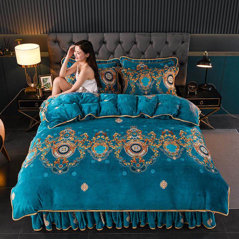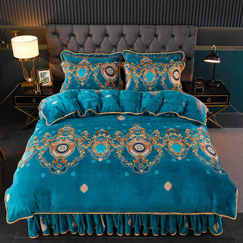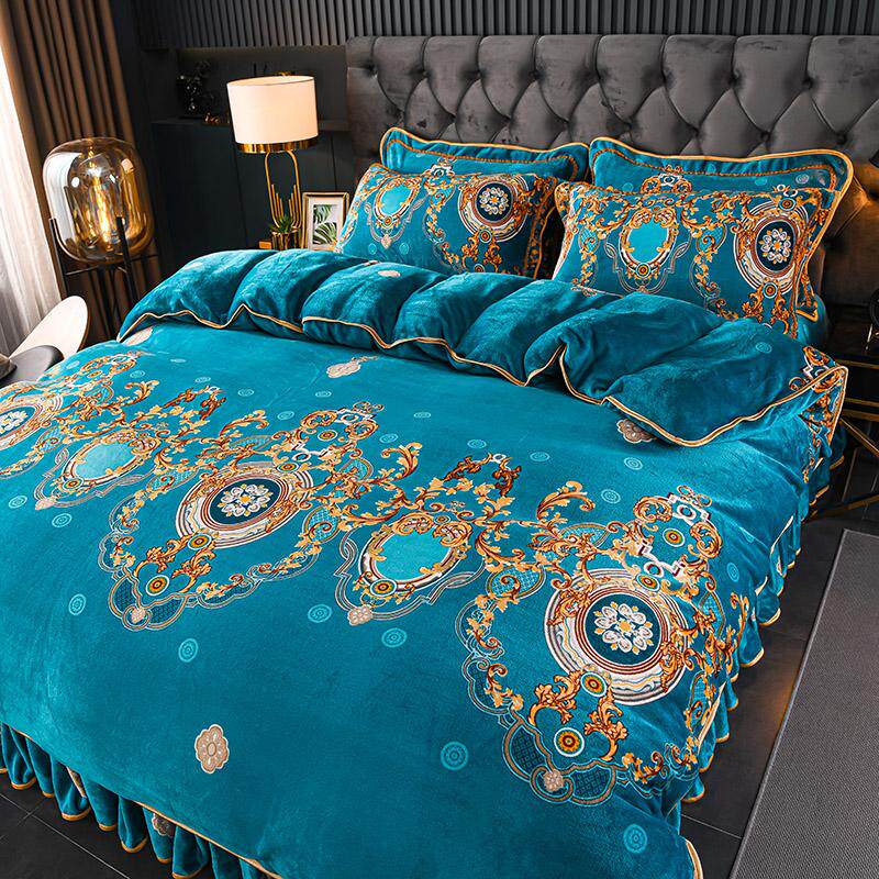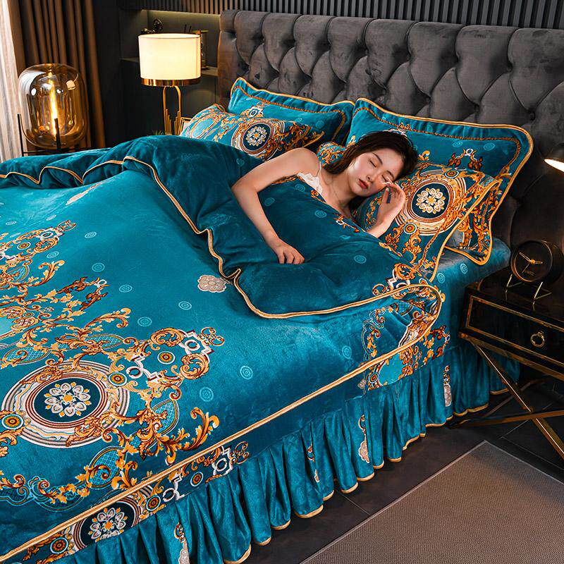 老人耐脏牛奶珊瑚绒床上四件套双面法兰绒床裙款床单金貂绒冬季