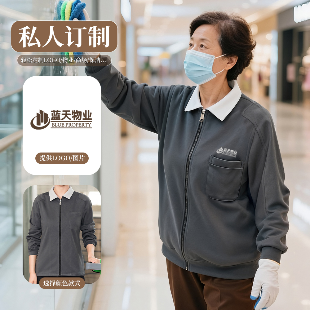 物业保洁工作服长袖女定制印logo酒店客房家政清洁工阿姨秋冬外套