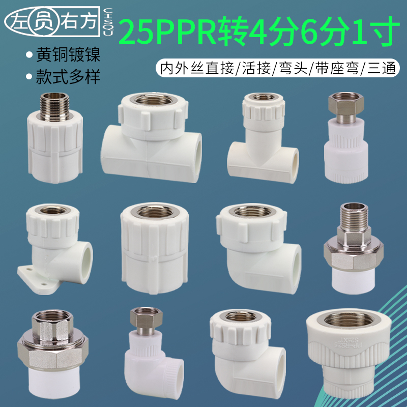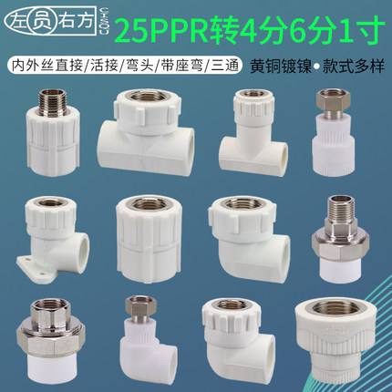 PPR25活接三通弯头直接热熔管件变4分6分1寸内牙外扣ppr水管配件