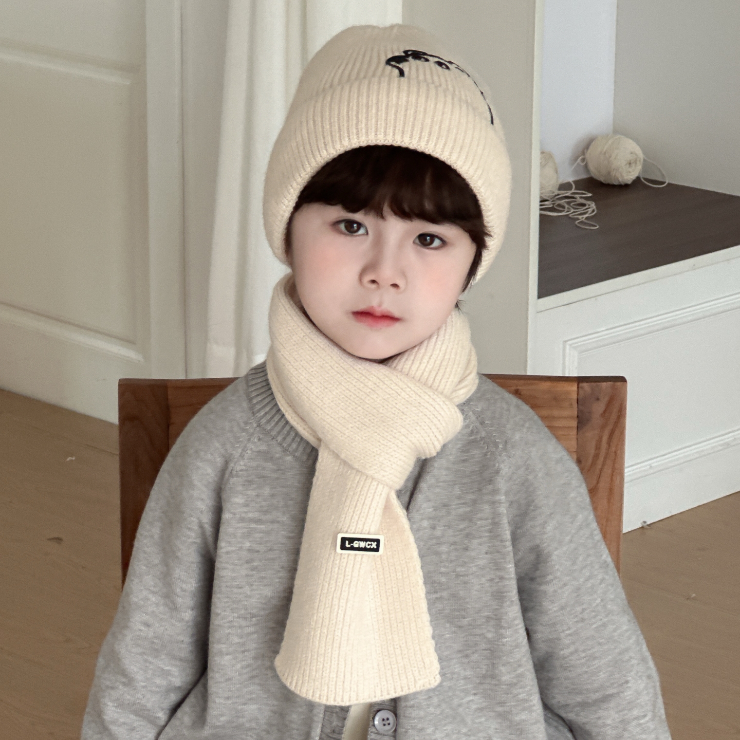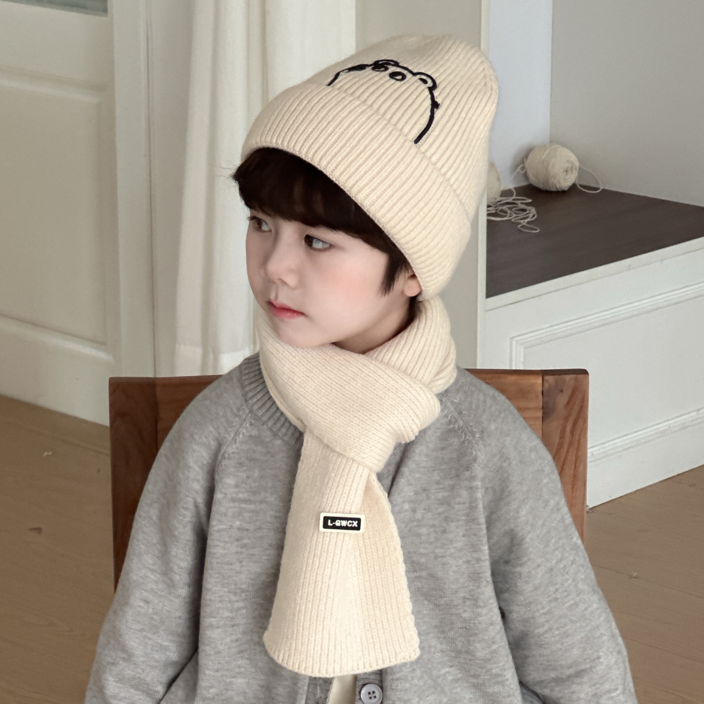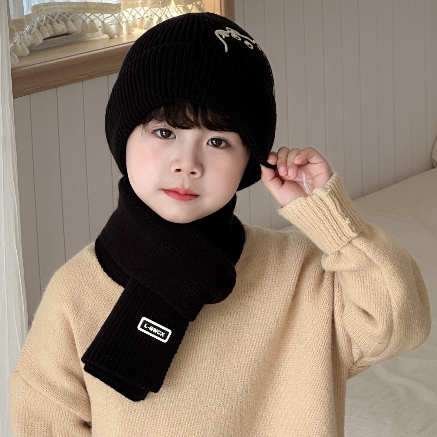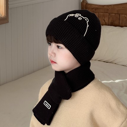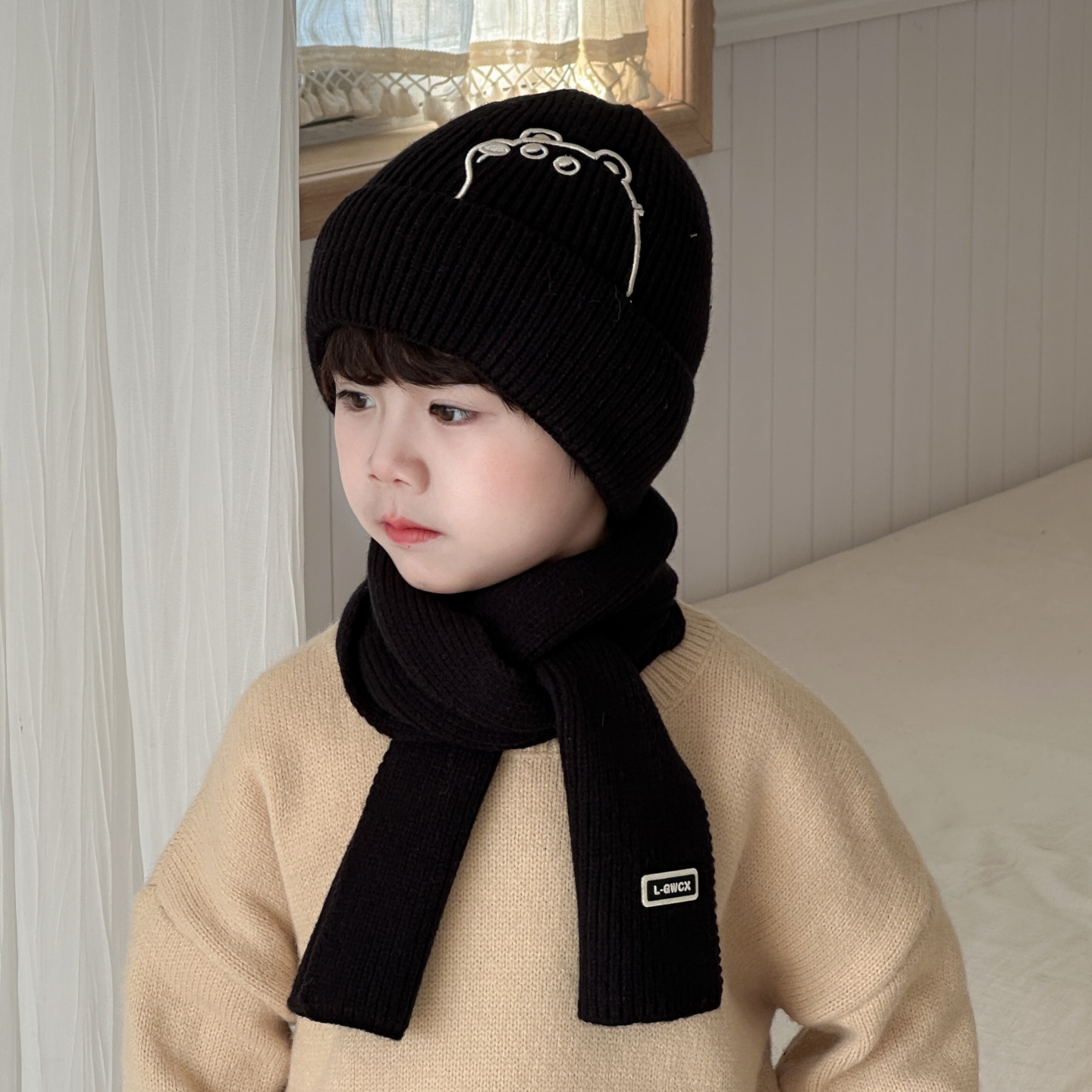 儿童帽子围巾二件套秋冬季休闲男女童毛线儿童加厚保暖宝宝护耳帽