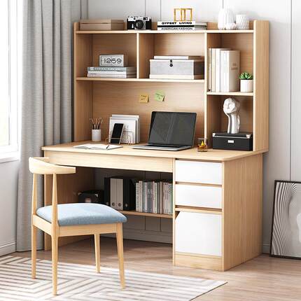 电脑桌台式办公桌书架书桌组合一体书柜家用简约学生学习写字桌