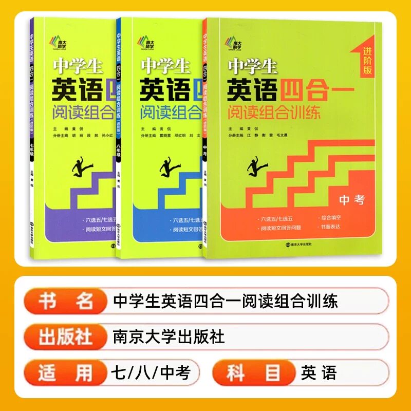 2026南大教辅中学生英语四合一阅读组合训练七八年级九年级中考进阶版 初中英语六选五/七选五789年级专项阅读训练南大励学