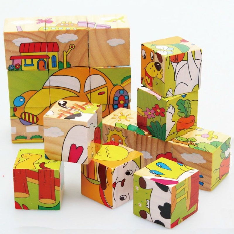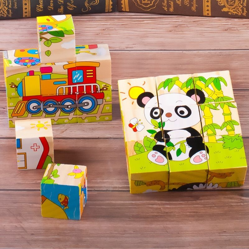 儿童六面立体拼图木质积木早教智力开发宝宝益智玩具1-2-3-4-6岁